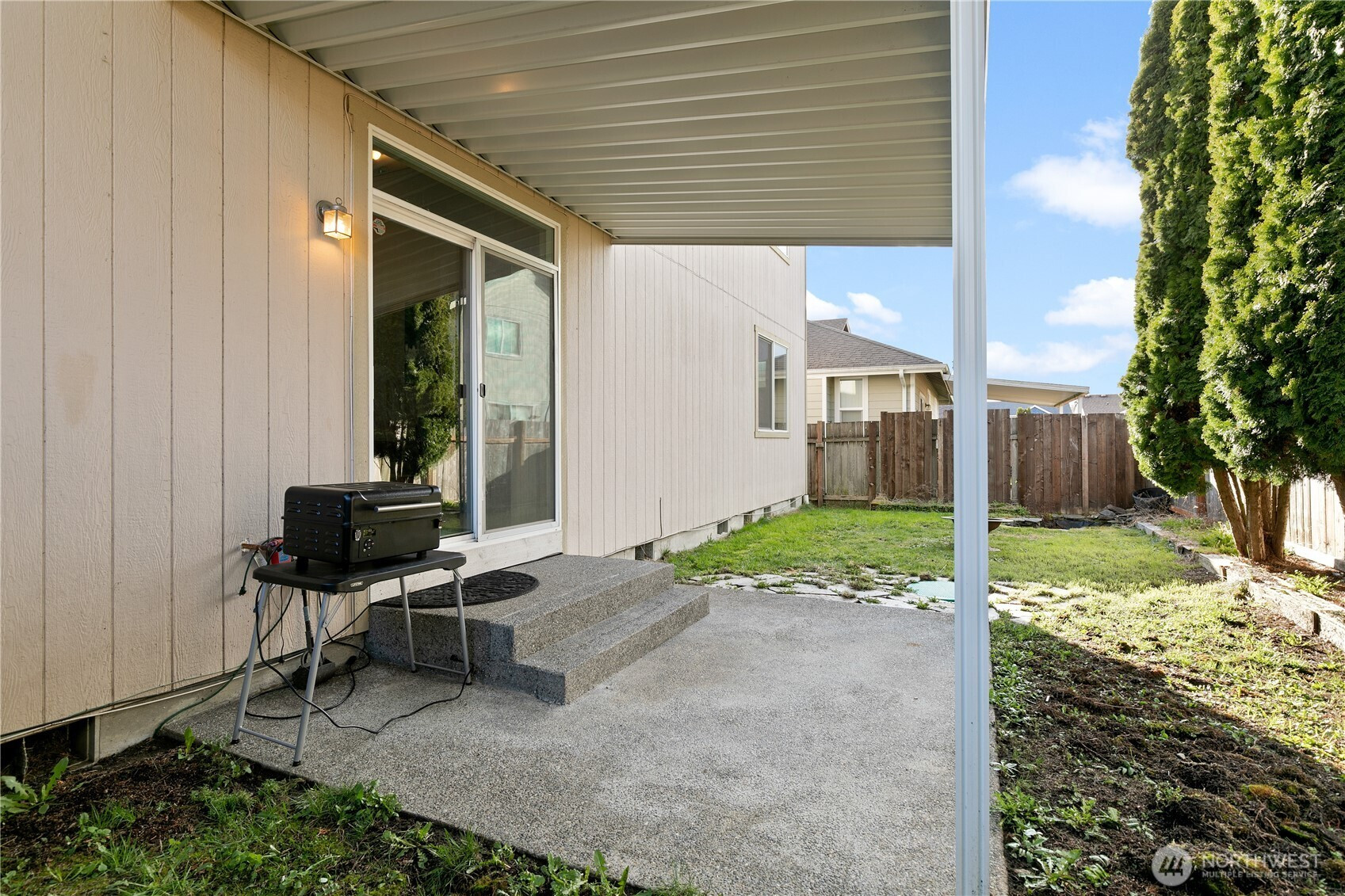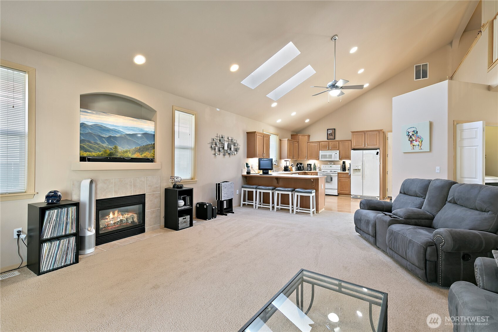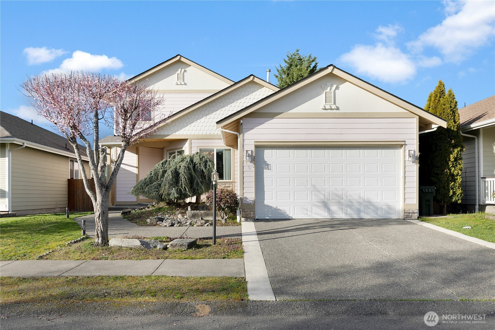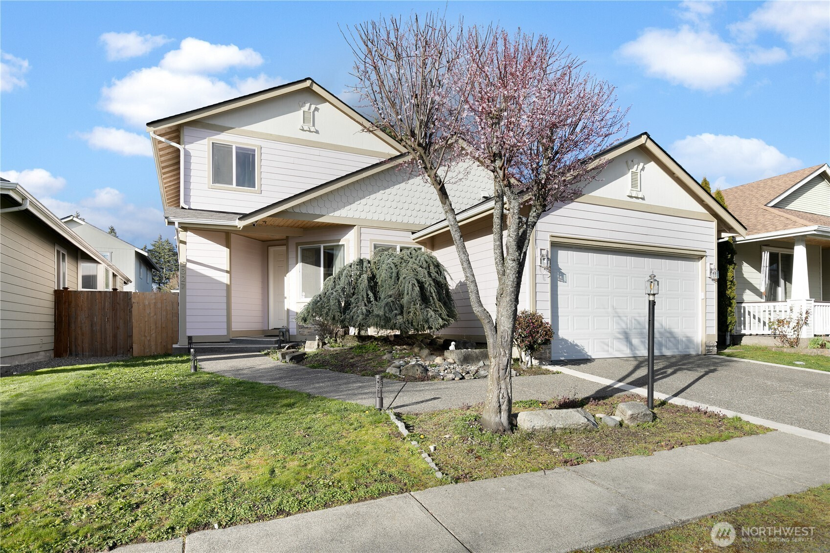 Discover this beautiful 3-bedroom, 2.5-bathroom home, offering abundant natural light and an open floor plan. The spacious living area flows into the kitchen, and the cozy fireplace adds charm. Retreat to the main floor primary suite with an ensuite bath and generous closet space. Enjoy the fully fenced backyard, perfect for entertaining or unwinding. Recent updates include a brand-new roof, dishwasher, garbage disposal, and skylights. A gas line for a BBQ and a covered patio enhance the outdoor space. Located in a peaceful neighborhood, close to shopping, great schools, dining, amenities, JBLM and more!