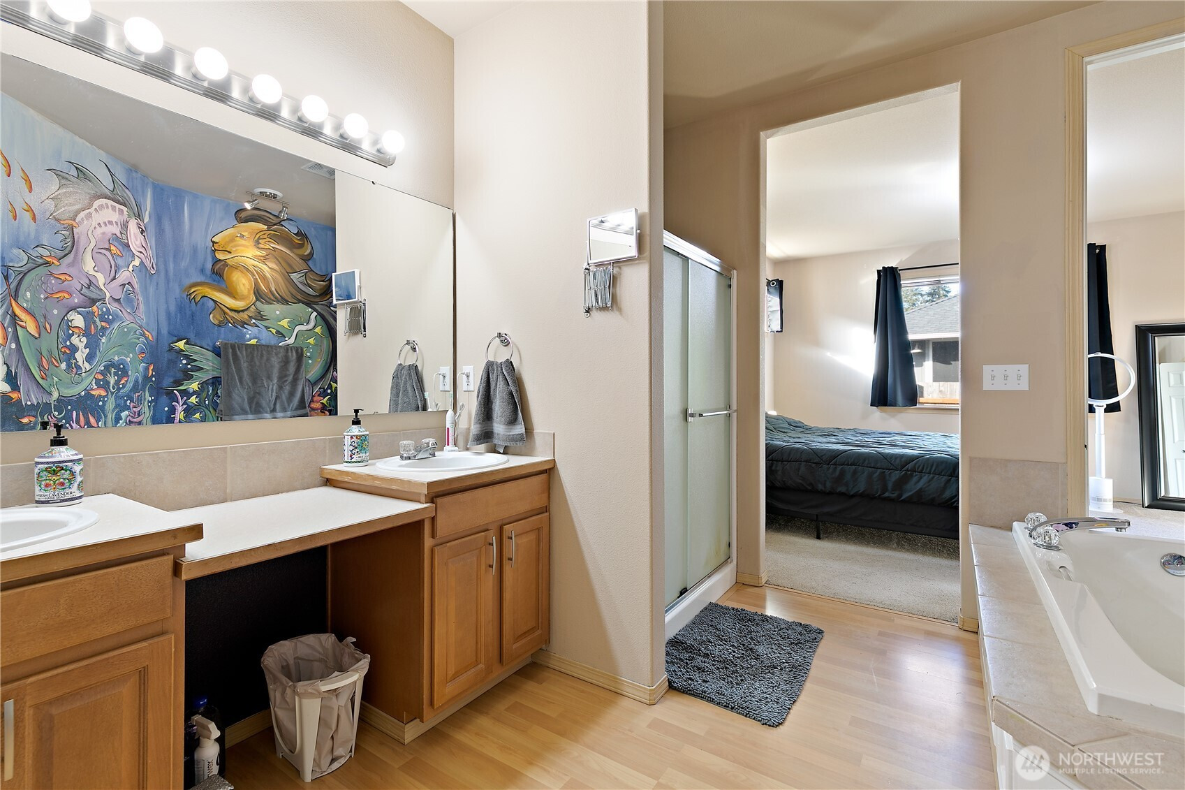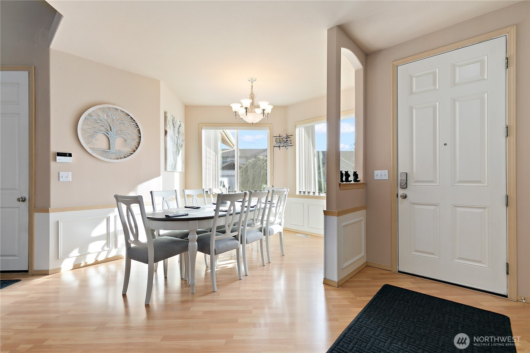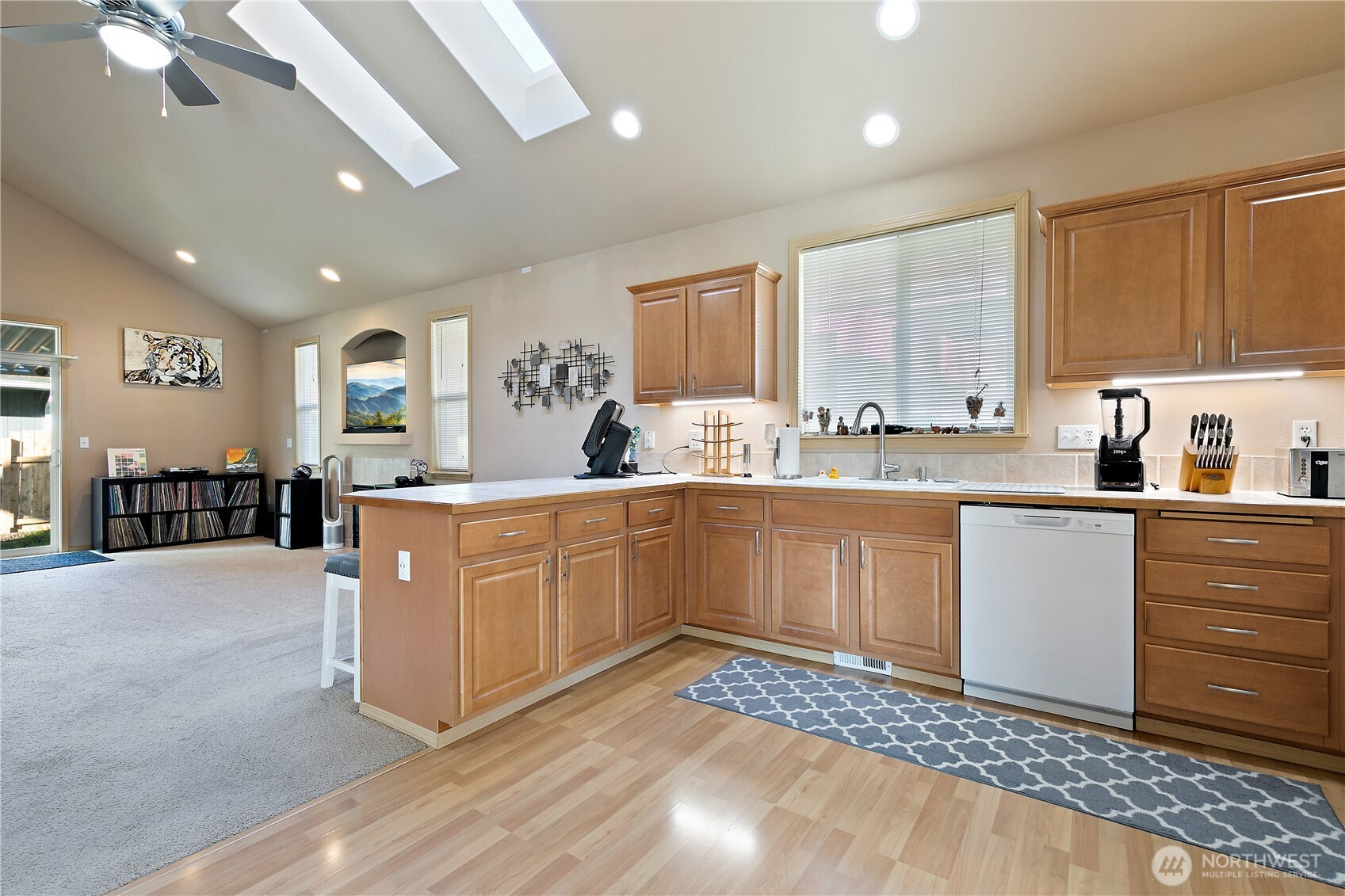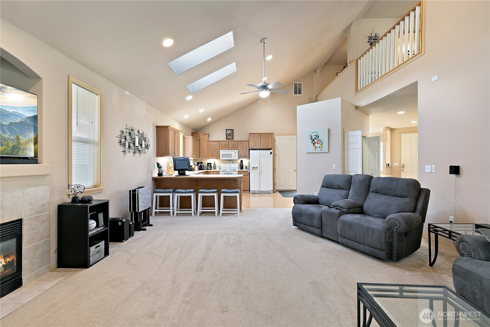 Discover this beautiful 3-bedroom, 2.5-bathroom home, offering abundant natural light and an open floor plan. The spacious living area flows into the kitchen, and the cozy fireplace adds charm. Retreat to the main floor primary suite with an ensuite bath and generous closet space. Enjoy the fully fenced backyard, perfect for entertaining or unwinding. Recent updates include a brand-new roof, dishwasher, garbage disposal, and skylights. A gas line for a BBQ and a covered patio enhance the outdoor space. Located in a peaceful neighborhood, close to shopping, great schools, dining, amenities, JBLM and more!
