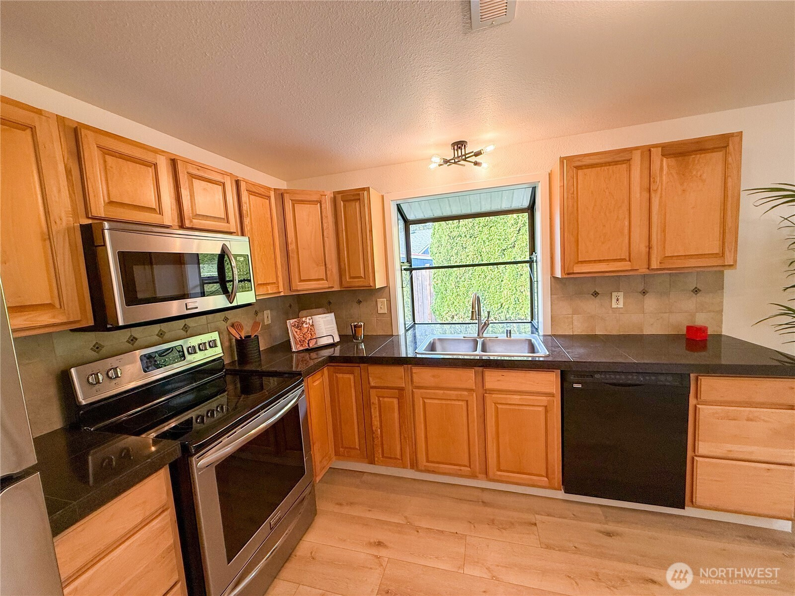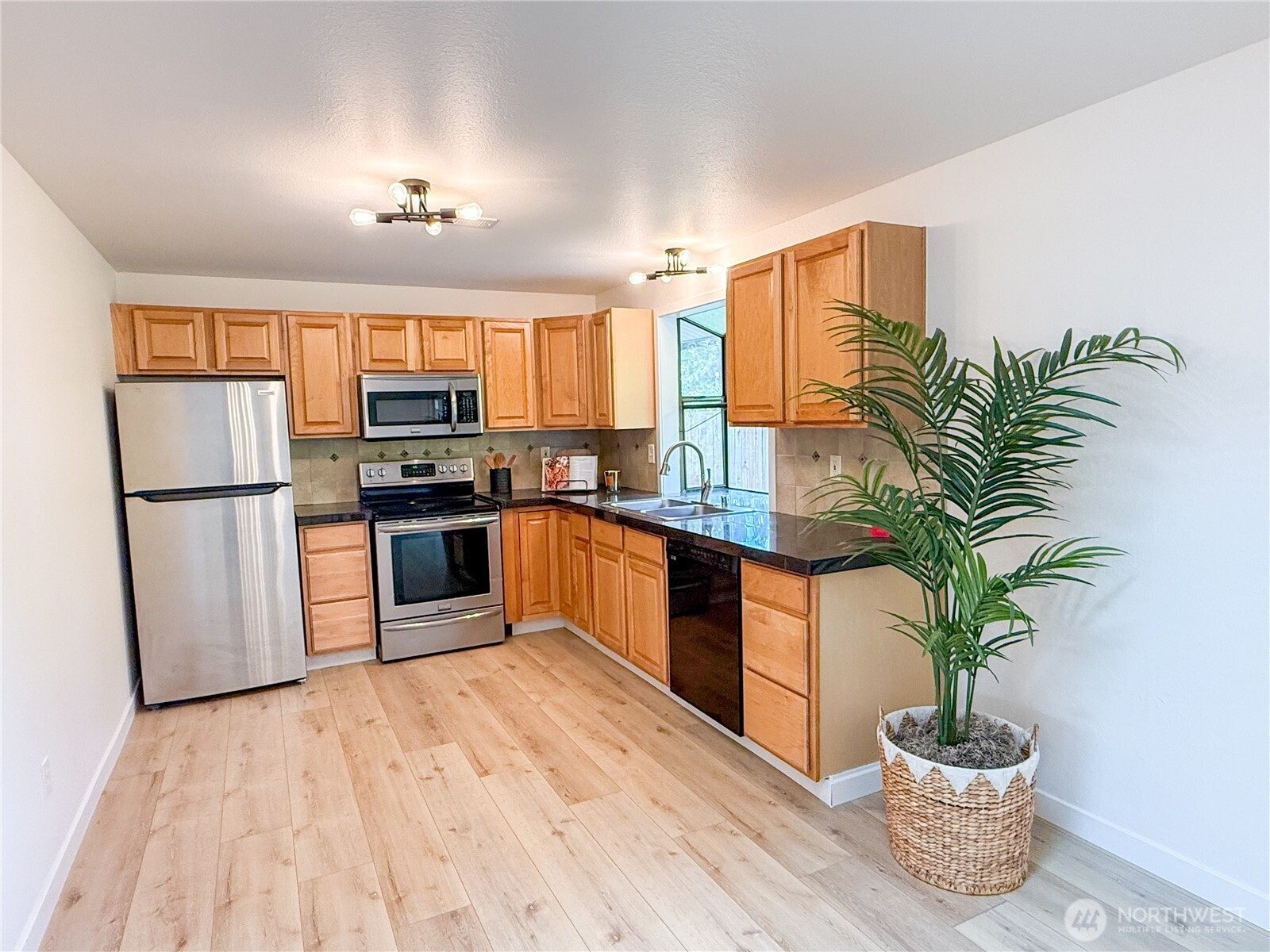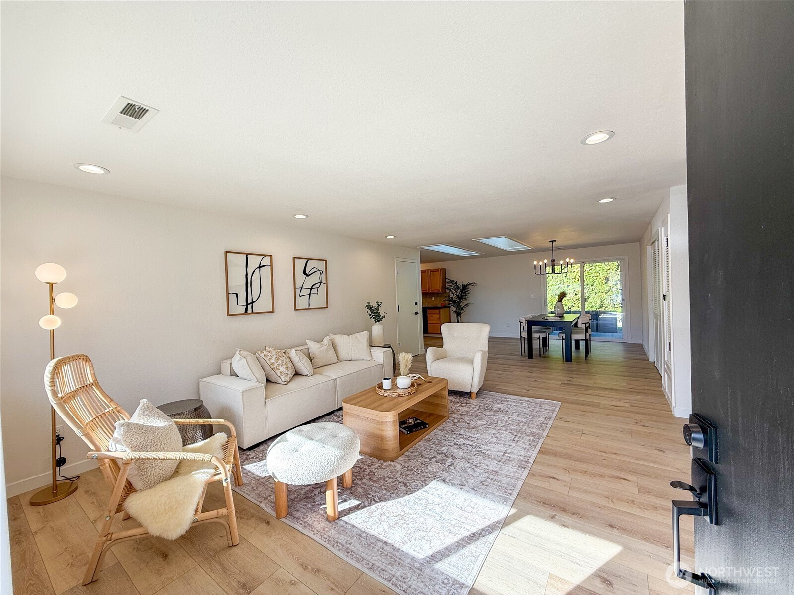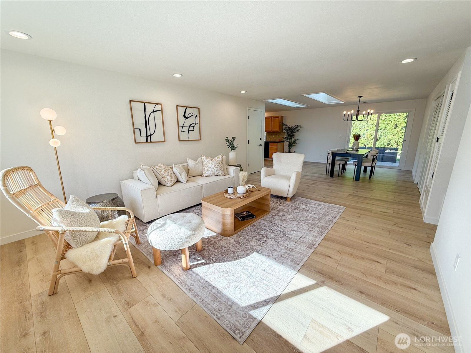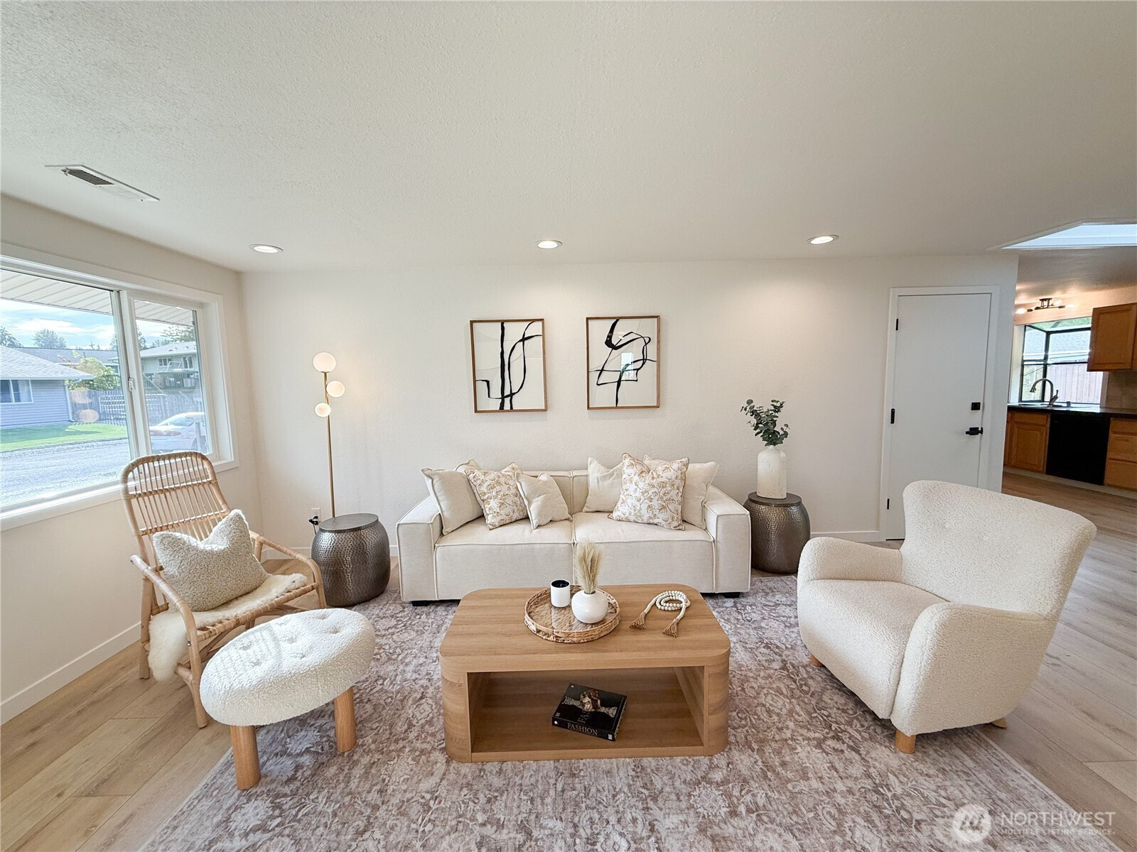 Newly renovated rambler tucked away in a quiet Puyallup cul-de-sac! This move-in ready 3-bed, 1.75-bath home blends modern comfort with modern charm. Step inside to a bright, open layout featuring new LVP flooring throughout, fresh interior paint, and skylights that fill the space with natural light. Updated kitchen offers quartz countertops, ample cabinetry for storage. The primary suite showcases stylish modern fixtures and finishes. Two additional bedrooms provide flexibility for guests, office, or hobbies. New roof adds peace of mind, and the s garage includes drop down ladder for extra storage and don't miss extra room in garage for? Enjoy outdoor living in the private backyard! And for summer you have RV parking and AC in the house