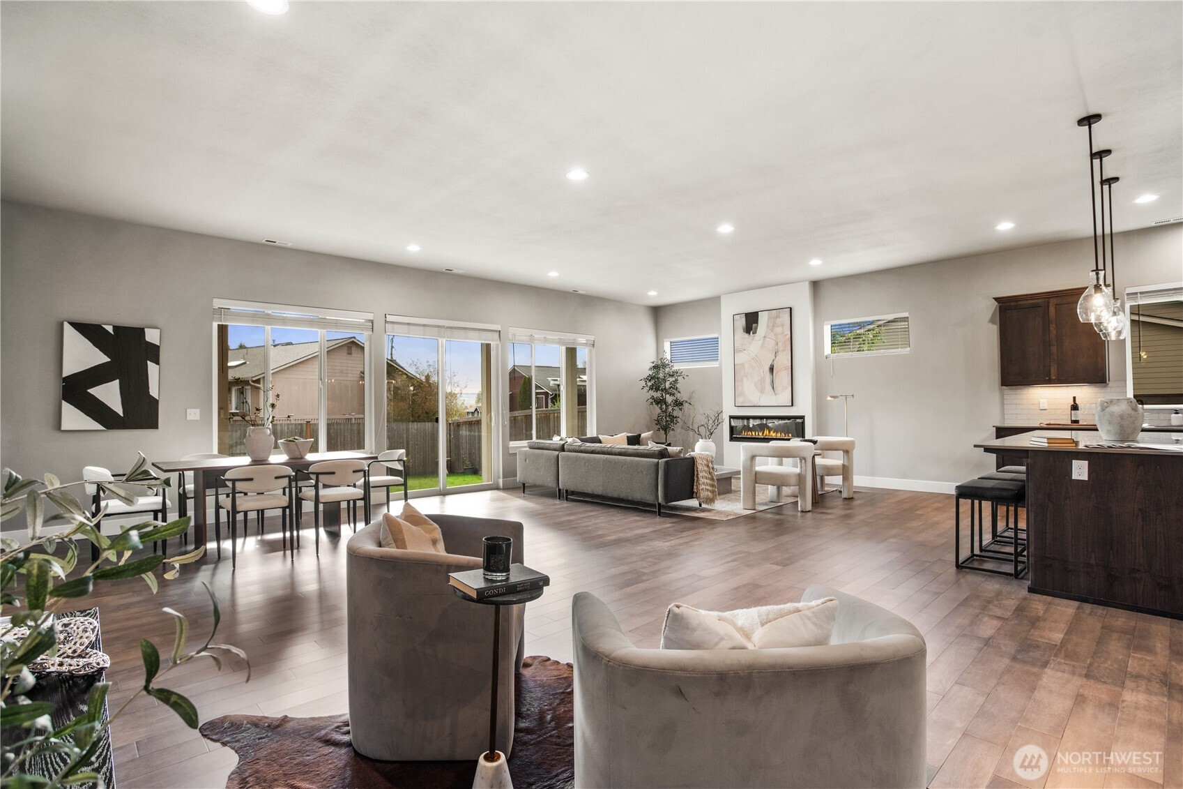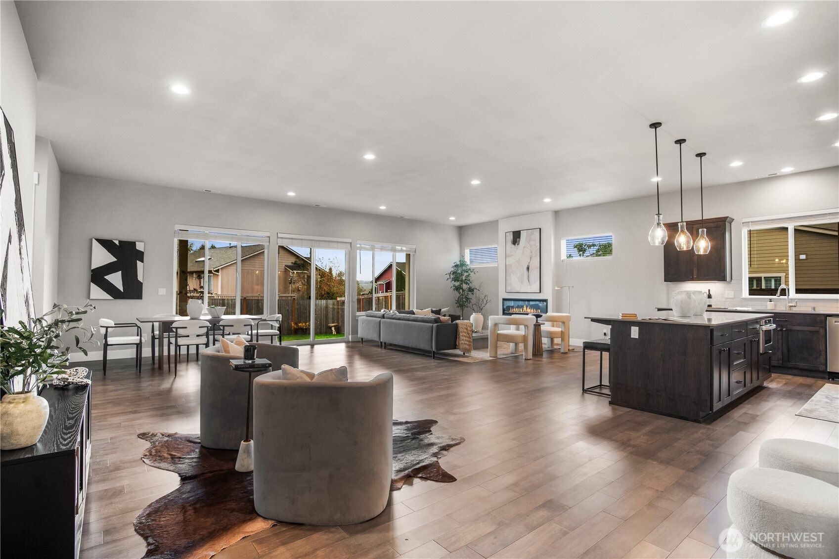 This beautifully built single-story estate offers 4 bedrooms, 3 bathrooms, and over 2,800 sq ft of open living space. Step inside to soaring 10-ft ceilings and exceptionally wide hallways that lead into the light-filled great room. The open layout flows seamlessly into the dining area and oversized kitchen featuring upgraded wood cabinetry, quartz counters, stainless steel appliances, and an expansive island! This home was built for entertaining! The cozy primary suite includes a spa-like bathroom and a massive walk-in closet. The additional three bedrooms are all generously sized. Outside, enjoy a private, fully fenced, low-maintenance backyard. Just minutes from shopping, restaurants, and Historic Snohomish.