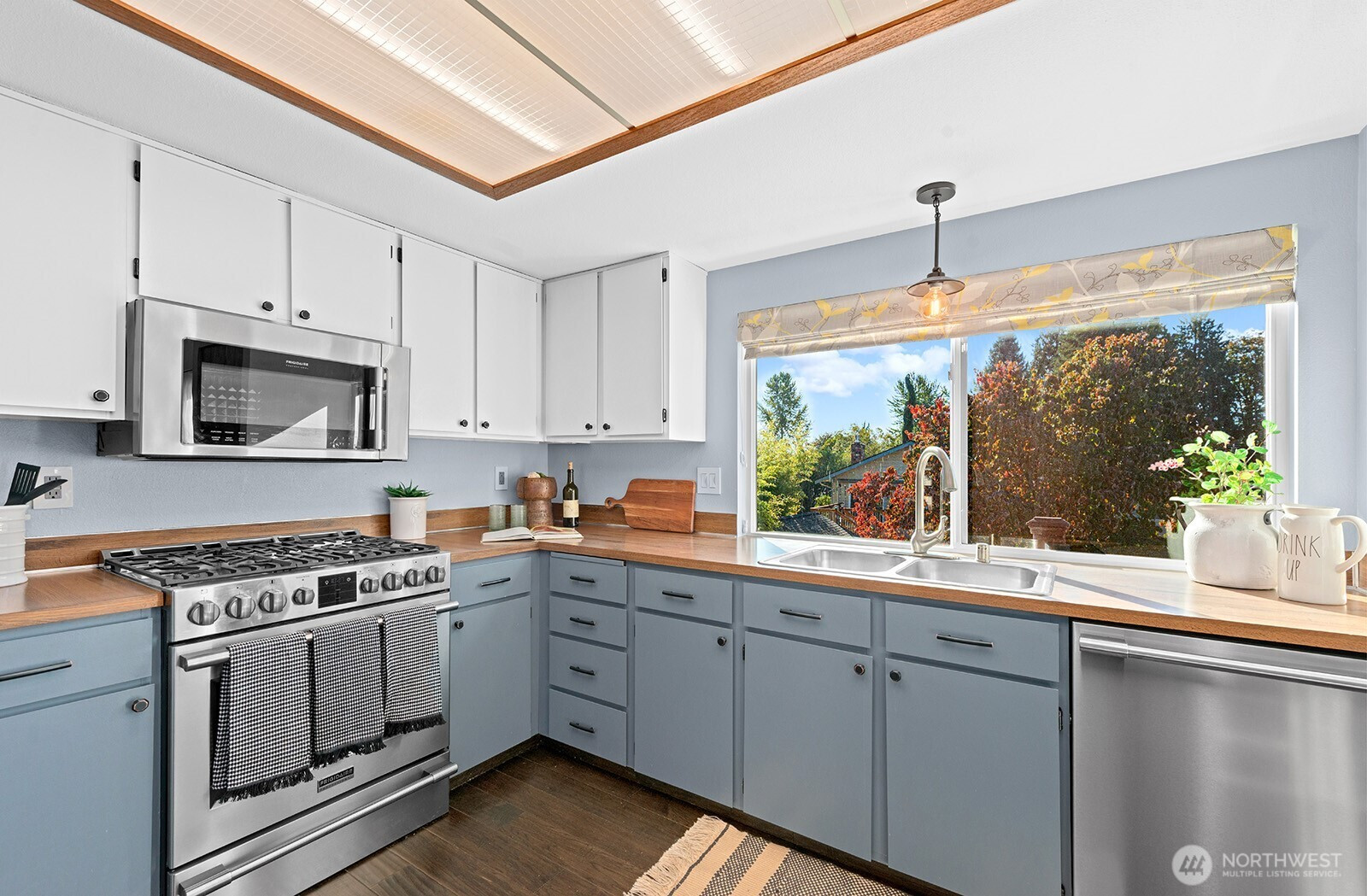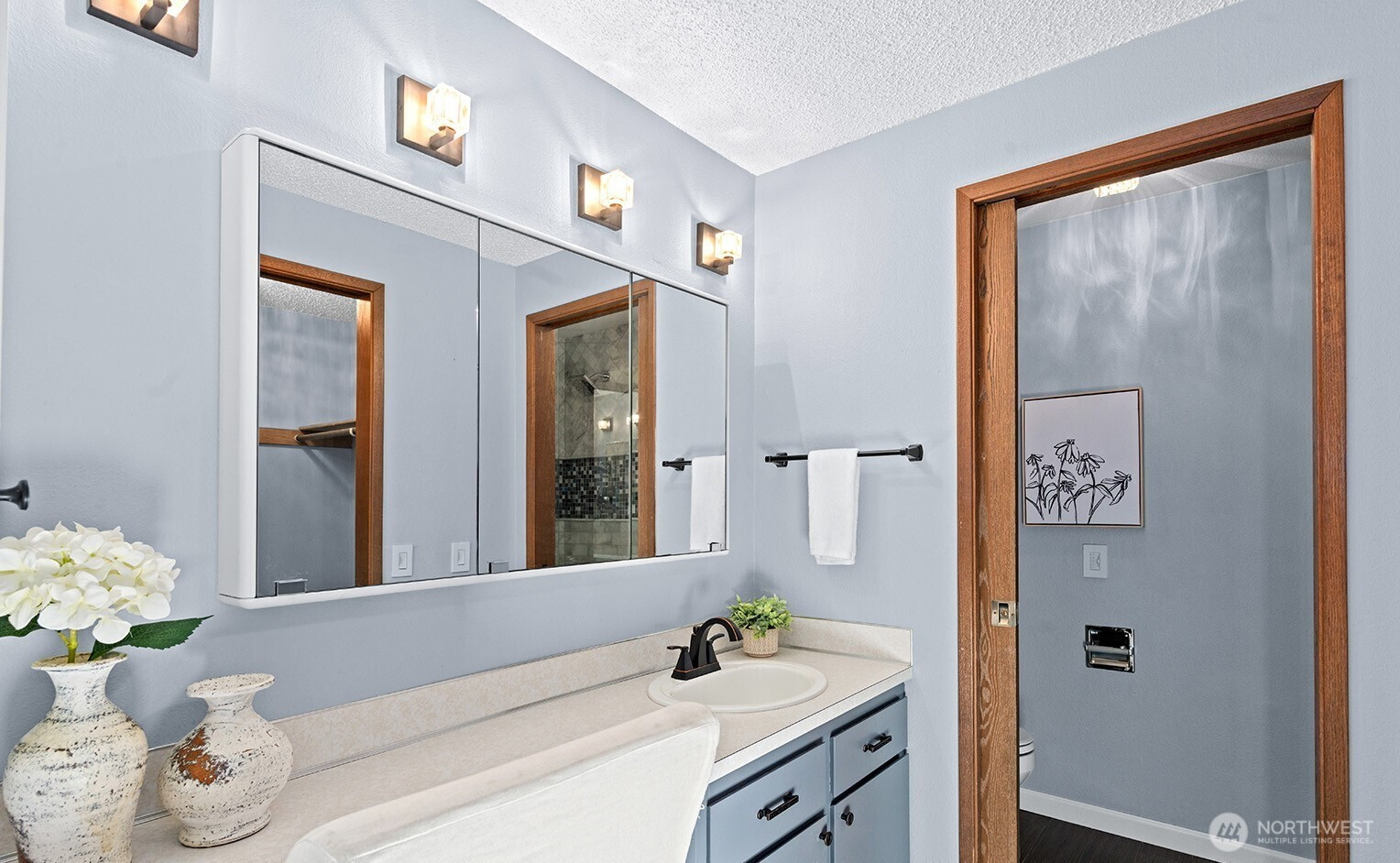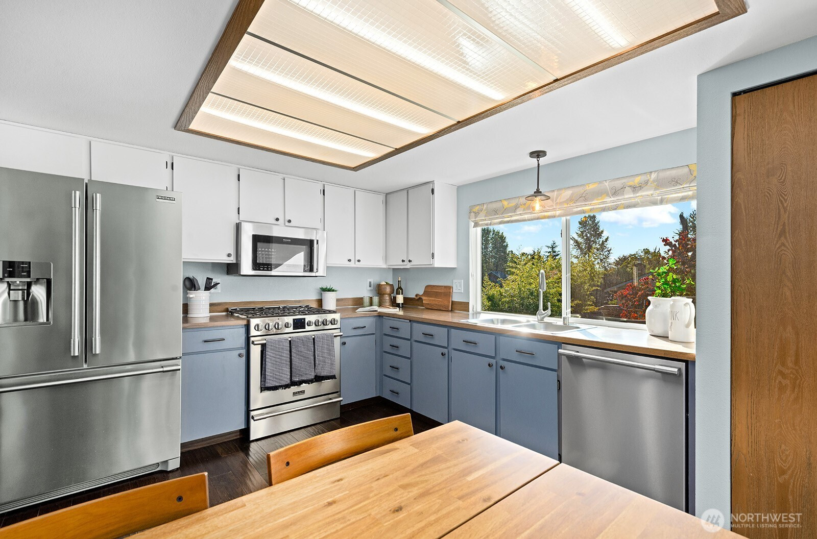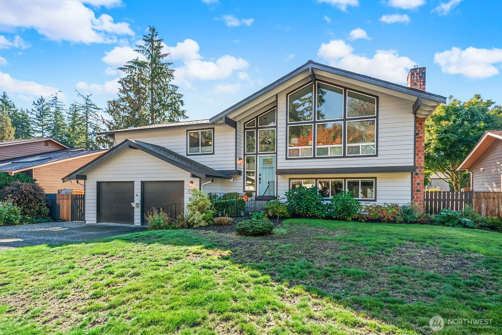 Spectacular split-level home with tons of updates and an unbeatable opportunity to make it your own. The spacious upper level has vaulted living room ceilings & soaring windows for tremendous natural light, plus gas fireplace, large dining room, & engineered hardwood floors. Attractive kitchen with eating space, stainless appliances, & big pantry. King bed sized primary suite with walk-in closet & updated bathroom. The 972 square feet of unfinished lower level is your chance to develop it for your taste & needs and is already plumbed for another bathroom. Plus, it has good ceiling height, fireplace, & separate entrance. Future ADU? Add 1 or 2 more bedrooms? Dream away! Newer roof & windows, updated plumbing, fenced yard, A/C & 2 car garage!