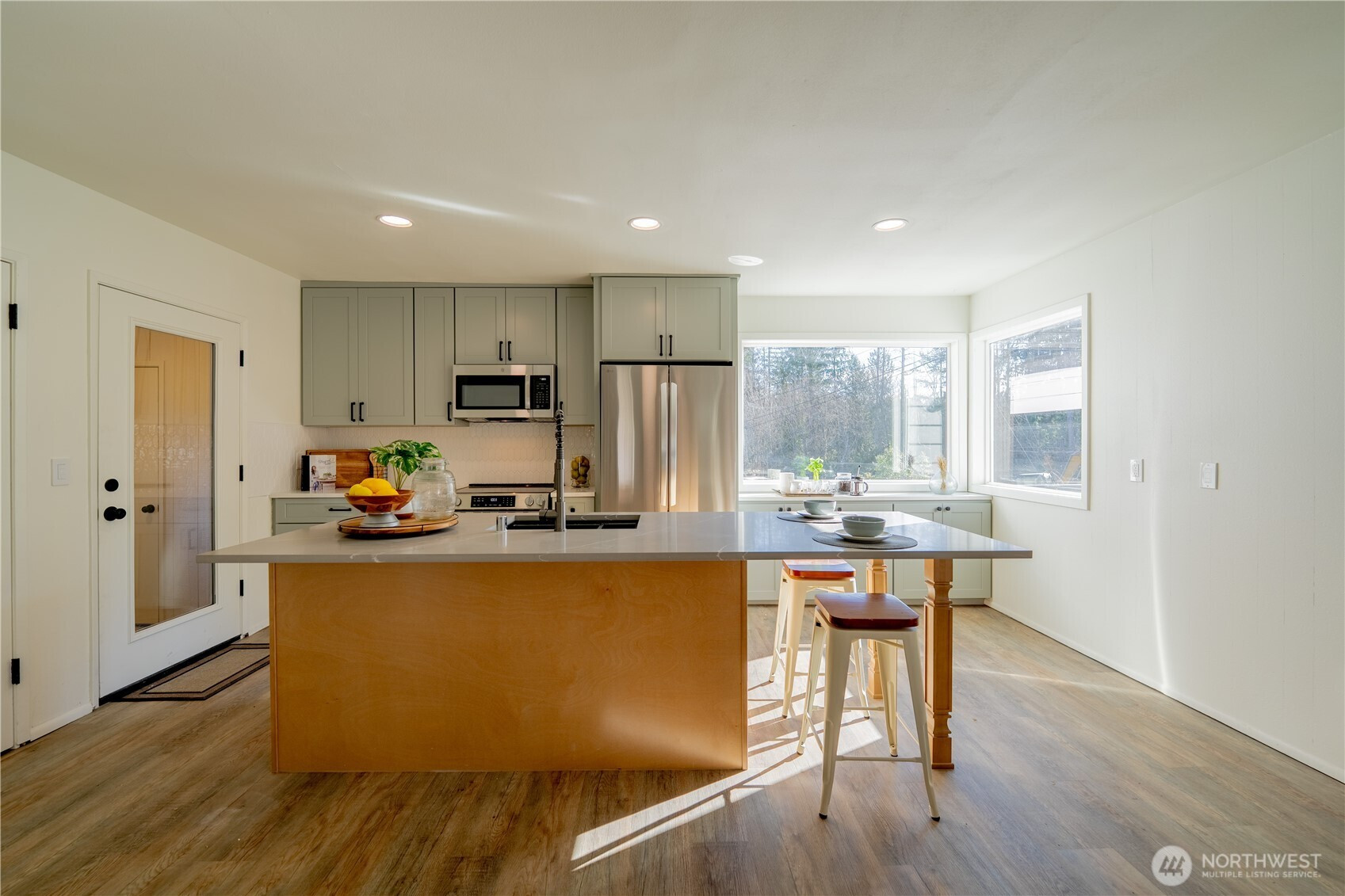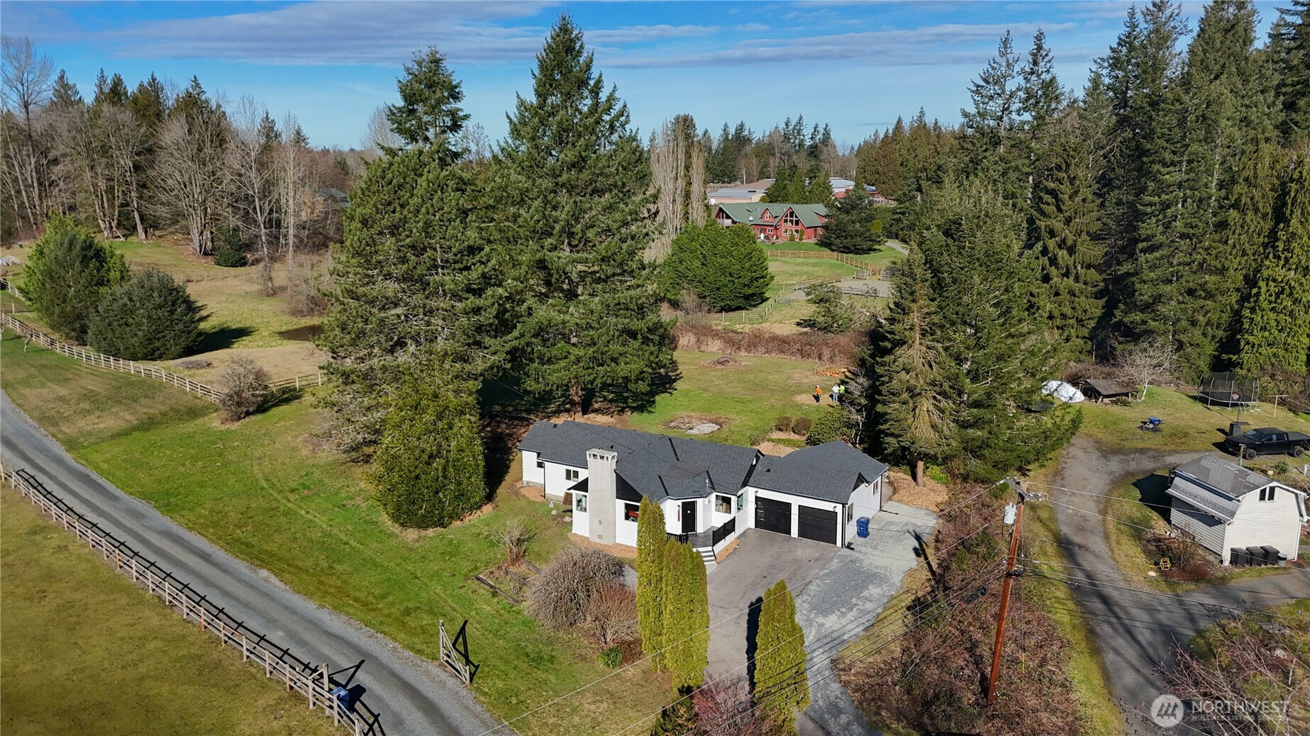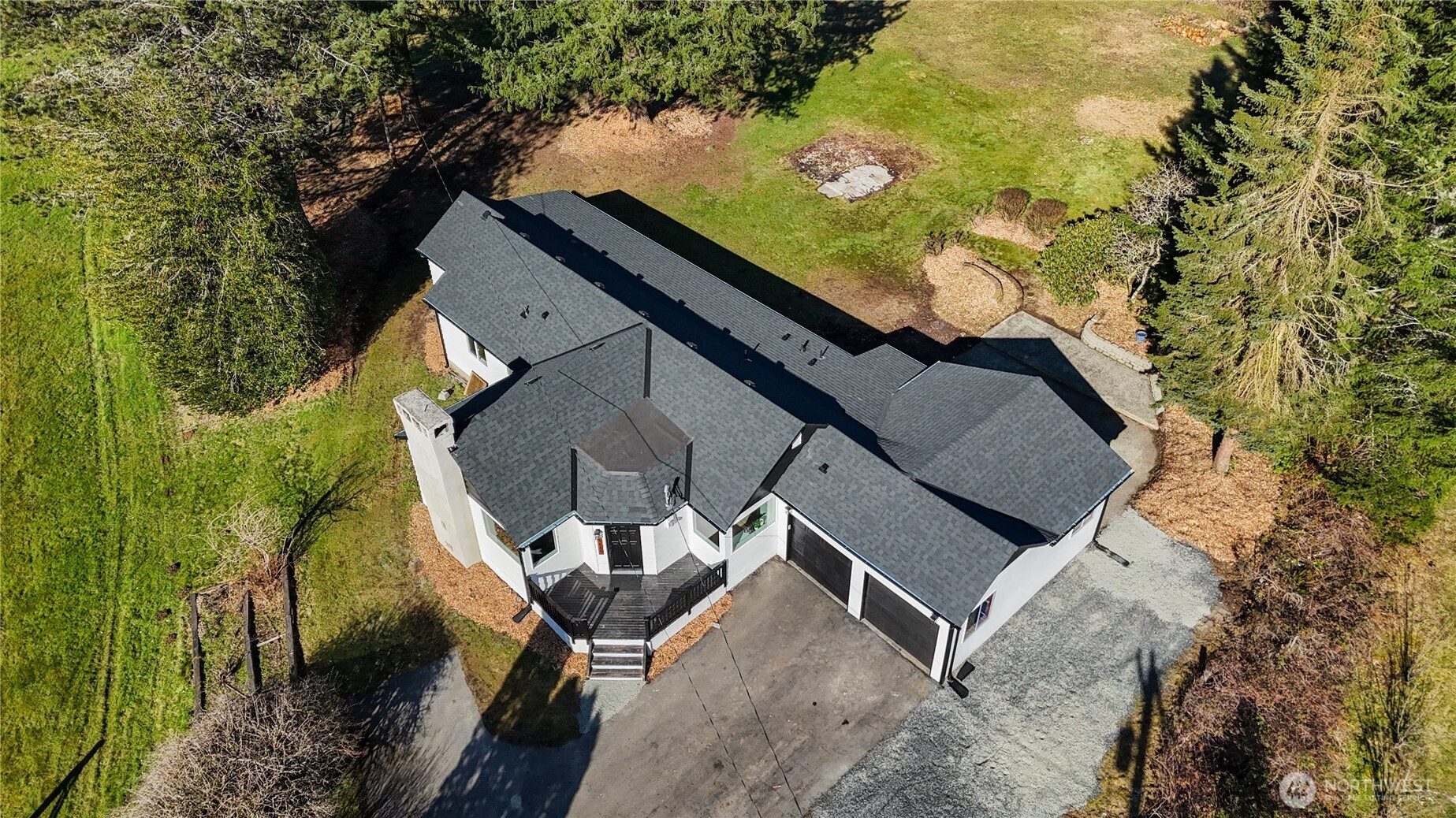 Large 1656 sq ft rambler on almost an acre in Three Lakes area near Panther Lake! Fully permitted renovation along with a new septic system. New Roof, Attic Insulation, Exterior Paint & Updated Vinyl Windows. You will fall in love with the eating bar island which is large enough to seat 7. Custom tile backsplash, SS Appliances and recessed lighting compliment the new cabinets and quartz countertops. Both bathrooms have been updated with new plumbing, new tub/showers, new vanities, new sinks & faucets. The laundry has a new Hot Water Tank, Washer & Dryer. There is a nice mudroom that leads to the concrete patio and fish pond. The Extra Large 2 car garage is attached and has newer garage door openers, firewood box, and work area. RV Parking.