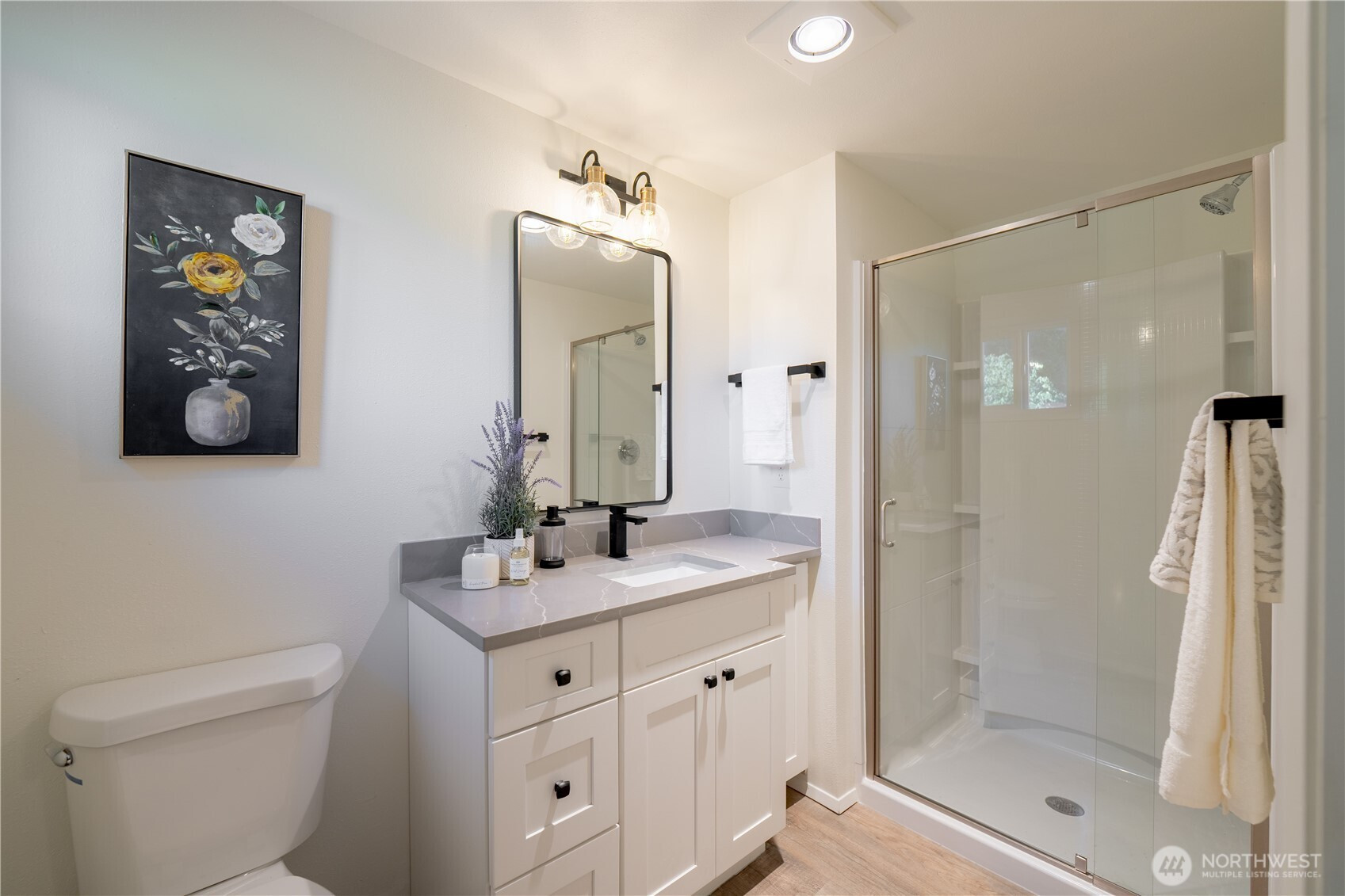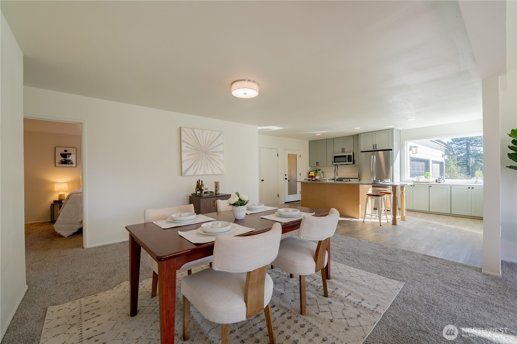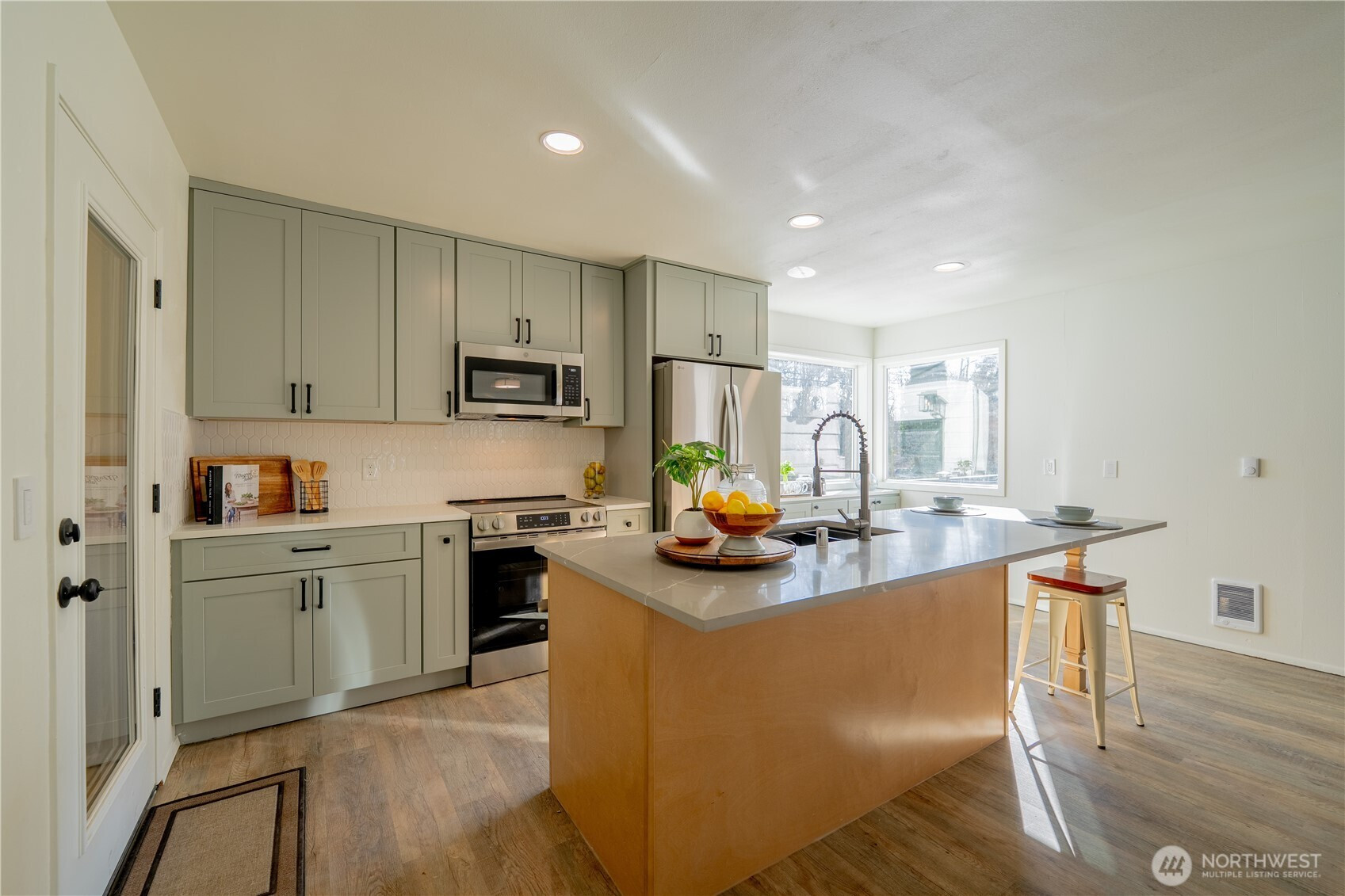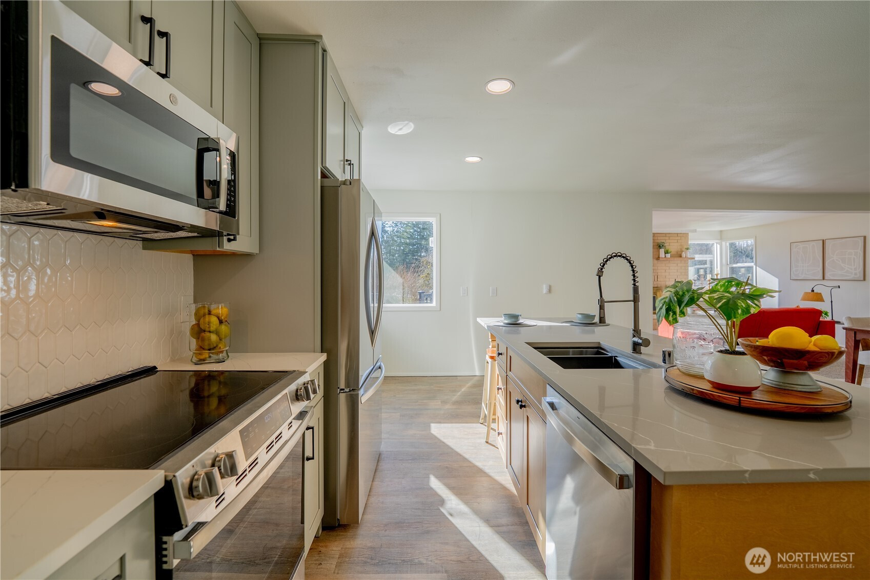 Large 1656 sq ft rambler on almost an acre in Three Lakes area near Panther Lake! Fully permitted renovation along with a new septic system. New Roof, Attic Insulation, Exterior Paint & Updated Vinyl Windows. You will fall in love with the eating bar island which is large enough to seat 7. Custom tile backsplash, SS Appliances and recessed lighting compliment the new cabinets and quartz countertops. Both bathrooms have been updated with new plumbing, new tub/showers, new vanities, new sinks & faucets. The laundry has a new Hot Water Tank, Washer & Dryer. There is a nice mudroom that leads to the concrete patio and fish pond. The Extra Large 2 car garage is attached and has newer garage door openers, firewood box, and work area. RV Parking.