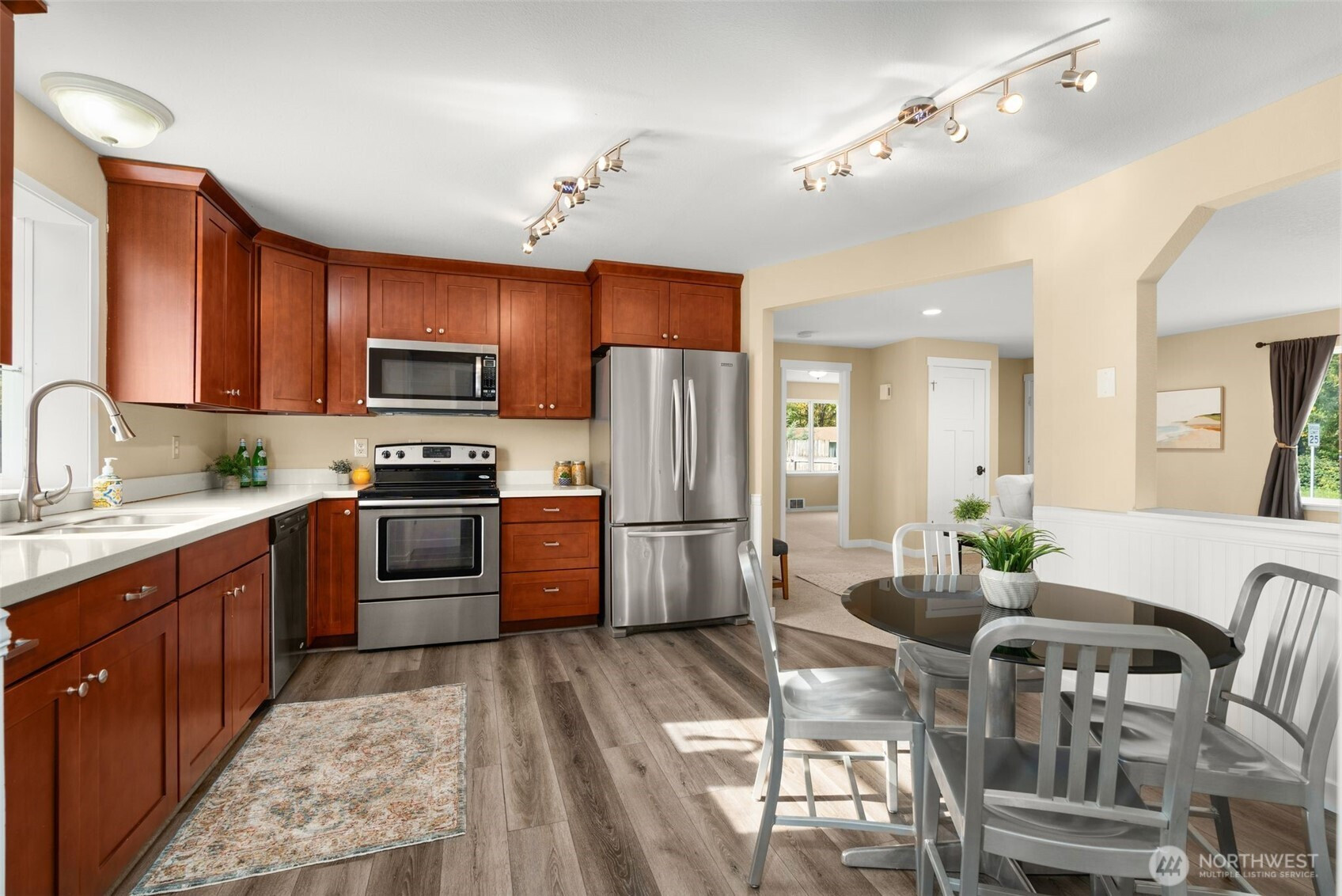 Welcome to your new home in a peaceful cul-de-sac. This 2BR rambler sits on a generous lot with huge, fully fenced backyard. The home has fresh paint, new flooring, and a recently renovated kitchen and bathroom. The outdoor space is the real highlight, featuring a dedicated workshop and a storage shed, giving you plenty of room for projects, or playtime. It's all about the space! Great location near the Pilchuck River and Centennial Trail, for your activities.