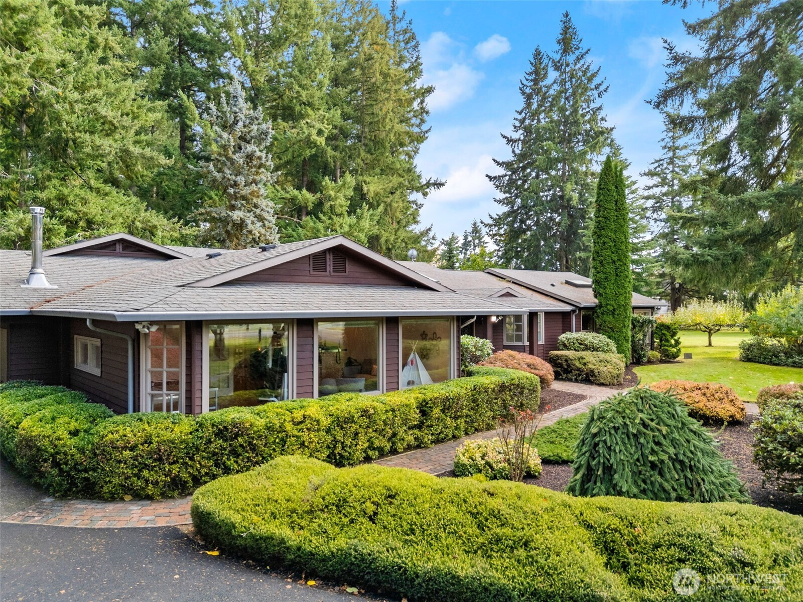 Enjoy peaceful country living in this spectacular custom rambler set on 4.77 level acres of lush, landscaped, partially wooded grounds—peaceful, pristine & minutes to town. A circular drive welcomes you home, with vaulted ceilings, skylights & pretty French doors framing serene views from every room. The luxurious primary suite boasts a spa-inspired 5-piece bath & deluxe closet. A sizable secondary suite, 3rd BR & home office offer comfort & flexibility. The expansive kitchen with large eat-in island, flows to dining, living & bonus rooms. The sunroom opens to sweeping deck & private backyard. A 4-bay detached garage w/ shop, potting room & drive-through carport complete the setting—where nature, comfort & connection feel perfectly at home!