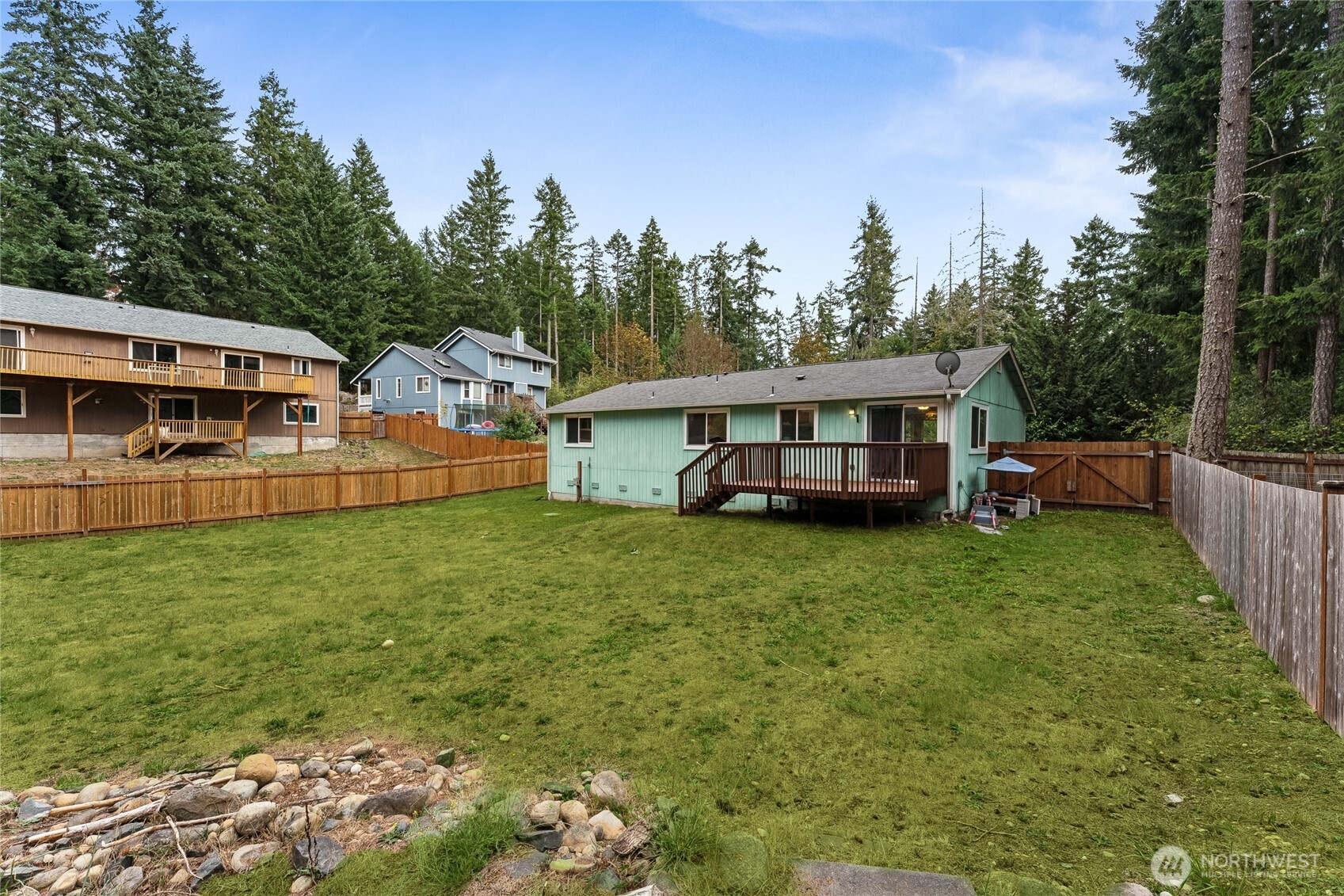 Welcomed by a private extended driveway at the helm of a cul-de-sac and greeted w/ ample parking, a 30-amp power and water RV stub, along w/ a large firepit, this spacious 3-bed/2-bath, 1,729 Rambler is sure to impress.Maximize the spatial efficiency in this open concept gem w/ vaulted ceilings, LVP flooring, natural lighting, and a grand primary bathroom suite w/ a deep walk-in closet.Indulge in the privacy of your fully fenced backyard starting on a freshly painted deck, perfect for family gatherings while the dogs run freely.Clearwood’s amenities include 3-lakes for fishing, swimming, and boating, walking trails, parks w/ covered BBQ awnings, boat launches, and a community center w/ a private in-ground pool and hot tub. Don't Miss Out!