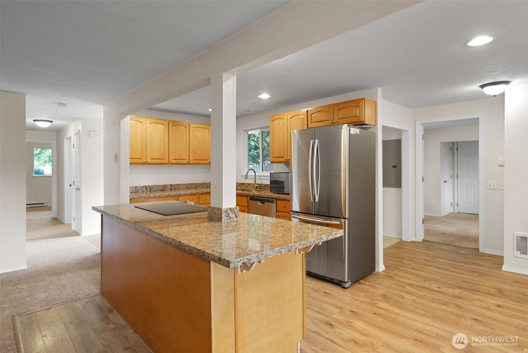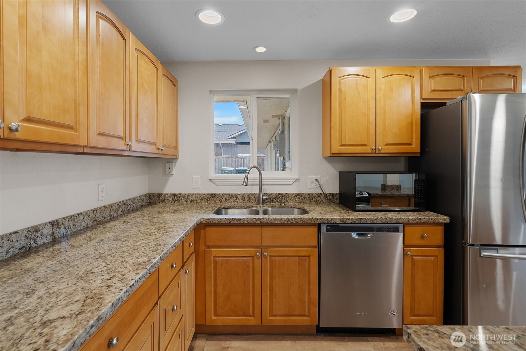 Welcome home to this well-maintained rambler featuring fresh new carpet and a bright, open layout. The kitchen boasts stainless steel appliances and ample cabinetry, perfect for everyday living and entertaining. Enjoy cozy evenings by the fireplace or relax in the spacious, fully fenced backyard—ideal for pets, play, and outdoor gatherings. With four comfortable bedrooms and a nearly quarter-acre lot, this home offers the perfect blend of comfort, space, and convenience. Move-in ready and waiting for you!