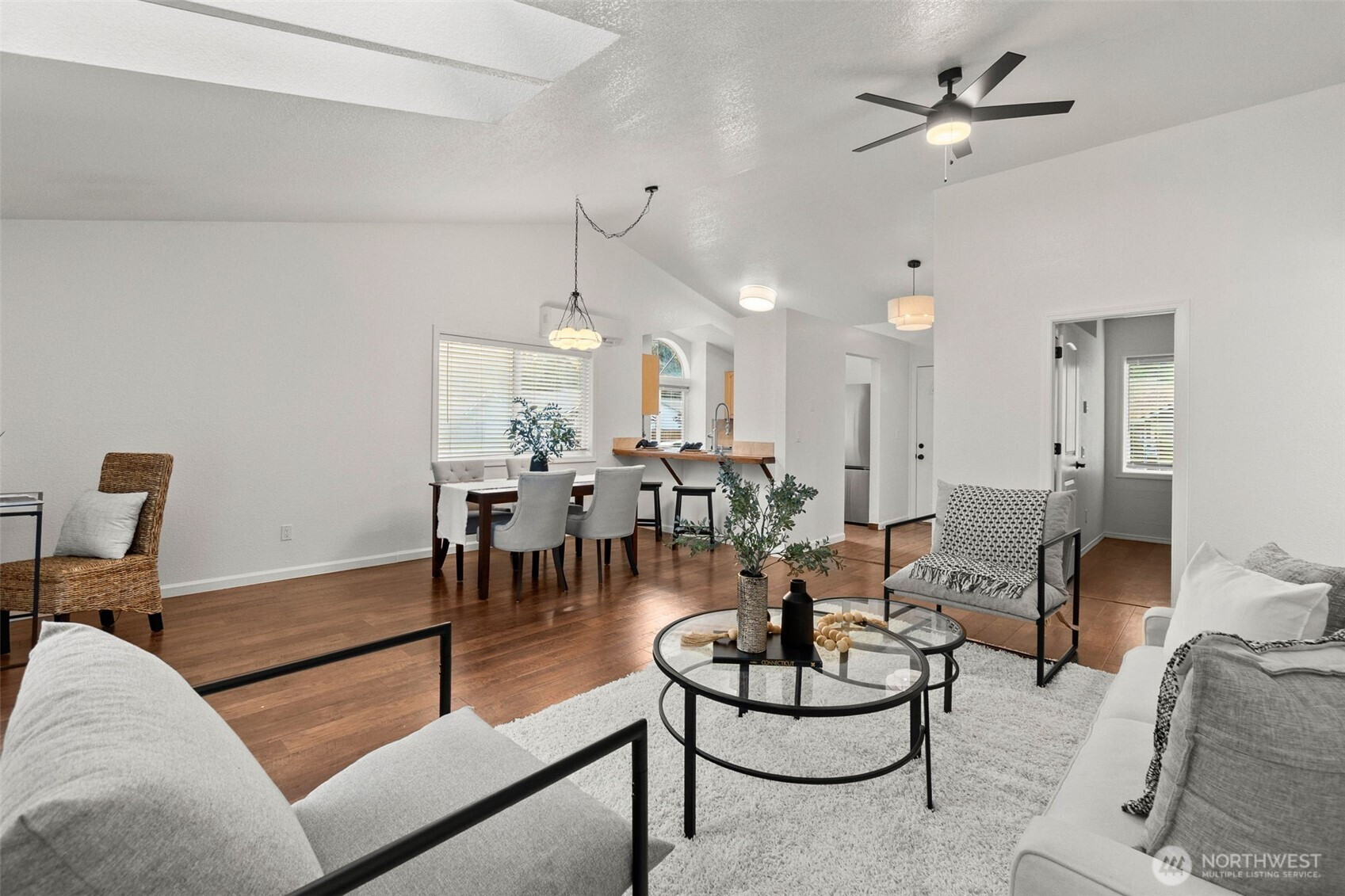 Remodeled and bright one-level living with all the right touches. Vaulted ceilings, skylights, and an open layout create a welcoming feel. The kitchen shines with brand new stainless appliances, updated cabinetry, and modern lighting throughout. Durable LVP flooring adds style and easy care. The dining area flows naturally to a spacious patio and fully fenced backyard—perfect for BBQs, that raised bed garden or relaxed gatherings. Three bedrooms and two full baths make everyday living simple. Updated mini split for heating+AC. Set in a great neighborhood close to parks, the Chehalis Western Trail, shopping, and dining, with easy I-5 access for the 11-mile JBLM commute. Fresh, stylish, and move-in ready—this is 'The Park' living at its best.