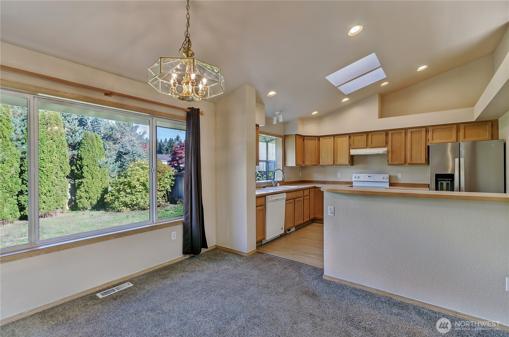 Spacious and full of potential, this tri-level home offers a smart layout and abundant natural light with vaulted ceilings and skylights. All 3 bedrooms, including a primary with ensuite bath, are privately situated on the top floor. The main level features a bright living room, dining area, and a well-designed kitchen with ample cabinet and counter space, and an easy flow for everyday living. On the lower level, enjoy a cozy gas fireplace in the bonus room that opens directly to the fully fenced backyard. A laundry room connects to the attached 2-car garage. Located in the charming Jackson Farm neighborhood with a community park and HOA-maintained front yards. See this one in person before it's gone!