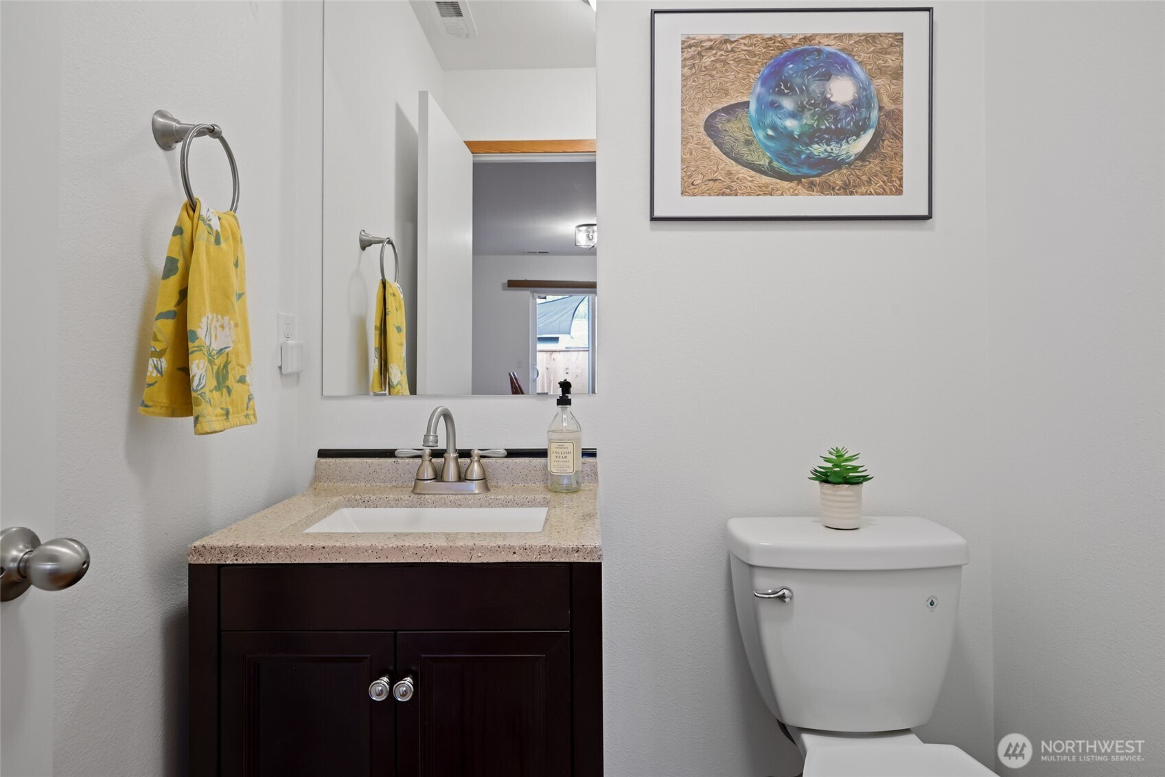 Spacious 3 bed home + office in cul-de-sac w 50-yr roof & heat pump! Large, open kitchen w newer appliances has walk-in-pantry, island countertop, & adjacent 1/2 bath; equally spacious living/dining area means flexible layout options. Newly added office w french door is the perfect place to work remotely or simply stay organized. Upstairs loft is a 2nd large living space & each bedroom boasts a walk-in closet. Primary en suite w 5-piece bath; roomy hall bath w shelves. Separate laundry room upstairs, dedicated mudroom from garage--at 2650sf, this home has space for all AND incredible storage! New trim throughout is a quality detail; new fence, & shade sail in back. Very well-cared for! By Rainier Vista park & paths, schools, shopping & I-5.