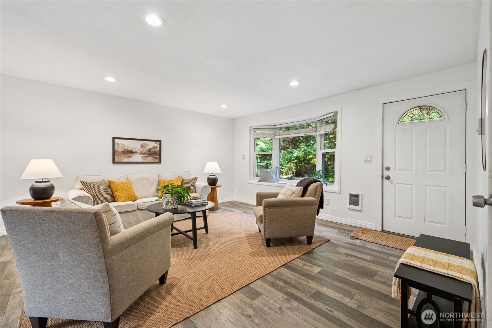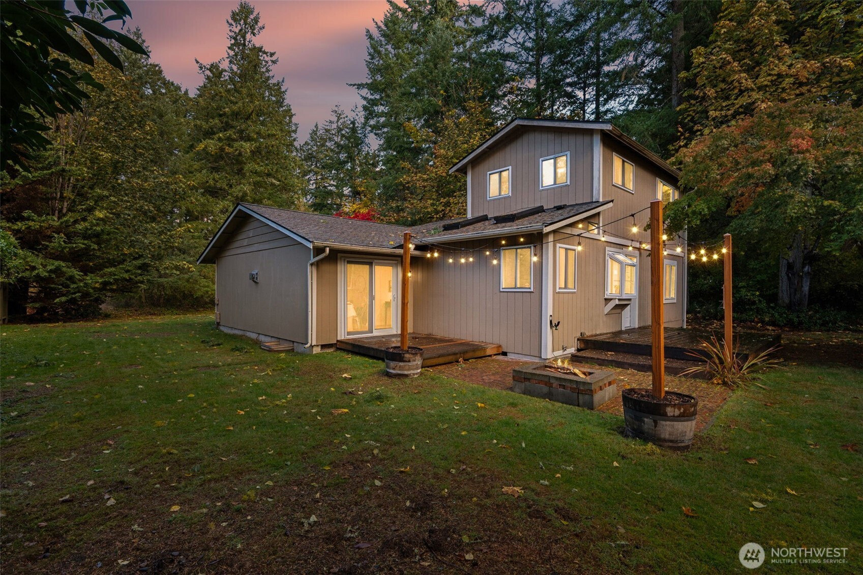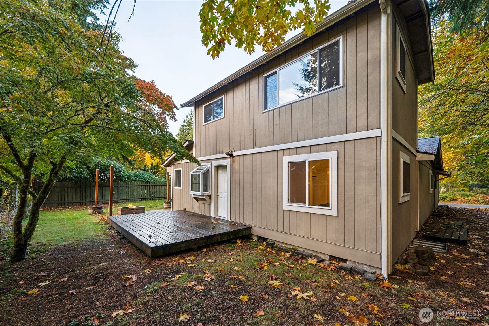 Welcome to this beautifully refreshed 3-bedroom, 1.75-bath Sunwood Lakes home surrounded by lush PNW scenery. Step inside to a bright, inviting layout featuring fresh interior updates, paint, and a kitchen with a clean, modern feel that blends warmth and functionality. The open flow creates comfortable living and dining spaces, while the upstairs loft offers flexibility for a second living area, playroom, or home office. Outside, the backyard is a true retreat—multiple decks and a peaceful patio area with fire pit among the trees create the perfect space to relax or entertain. HOA covers water bill. Enjoy community amenities including a pool, clubhouse, tennis courts, & trail, all just minutes from shopping, schools, and I-5 access.