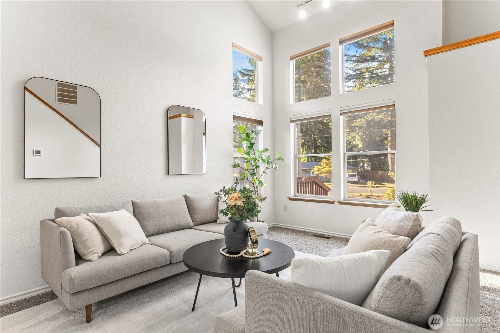 Welcome to Evergreen Shores Beach Club. This inviting 2-story home is filled with natural light and fresh updates, including new carpet and interior paint. The main-level primary suite features an updated bathroom and walk-in closet. Soaring vaulted ceilings greet you at the entry, and the open kitchen leads to a spacious deck and backyard with a cozy firepit—great for gatherings. Enjoy year-round comfort with AC and a 2-car garage. Take advantage of the neighborhood’s private lake access, 11 acre park, clubhouse, seasonal pool, playground, boat launch, and more.