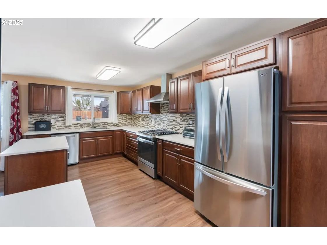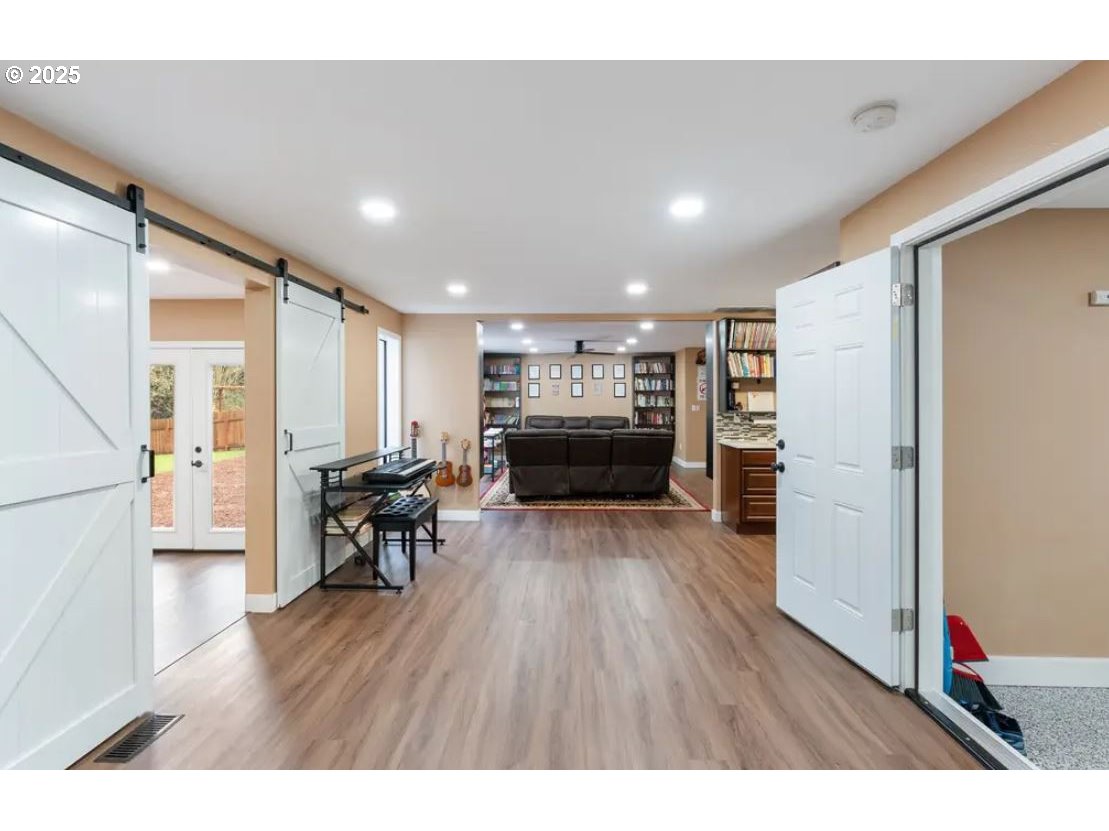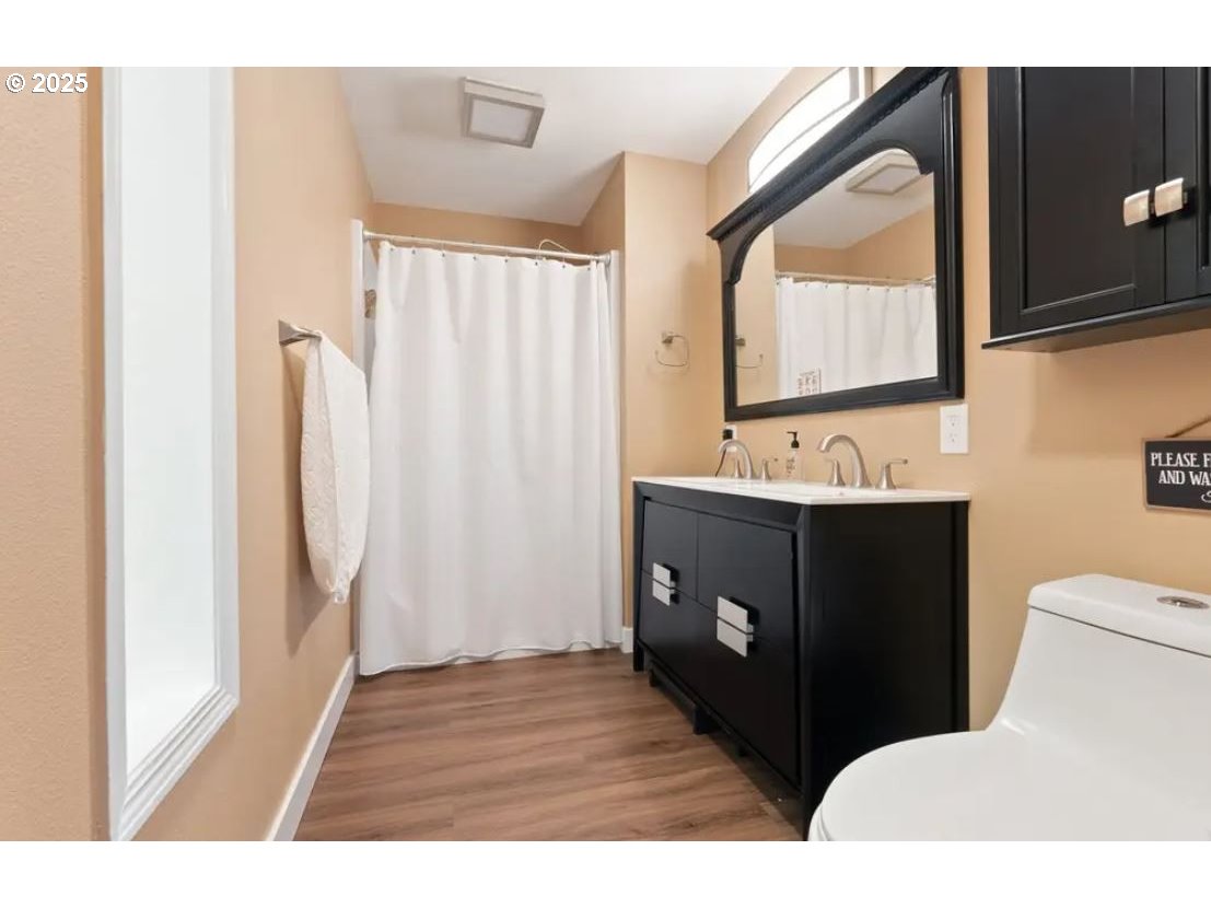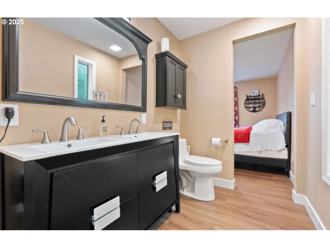 Gorgeous remodeled one-level ranch with 4 bedrooms and 2.5 bathrooms. This spacious home has been fully updated blending modern style with comfort. The stunning kitchen features new cabinets, quartz countertops, tile backsplash, and stainless-steel appliances. Additional upgrades include a new electrical panel, air conditioning, luxury vinyl plank flooring, new windows, walk-in closets, recessed lighting, and ceiling fans throughout. The heated garage with polyurea-coated flooring adds over 400 SF of additional living space, and a wall-mounted TV is included with the home. Outside, the fenced backyard offers privacy and gate access to a serene creek. 1 mile from downtown Hillsboro, 2 minutes from U.J. Hamby Park, and with an easy commute to Intel. Home requires foundation repair. Buyer to perform due diligence. As Is. Cash Offers only. [Home Energy Score = 1. HES Report at https://rpt.greenbuildingregistry.com/hes/OR10224308]