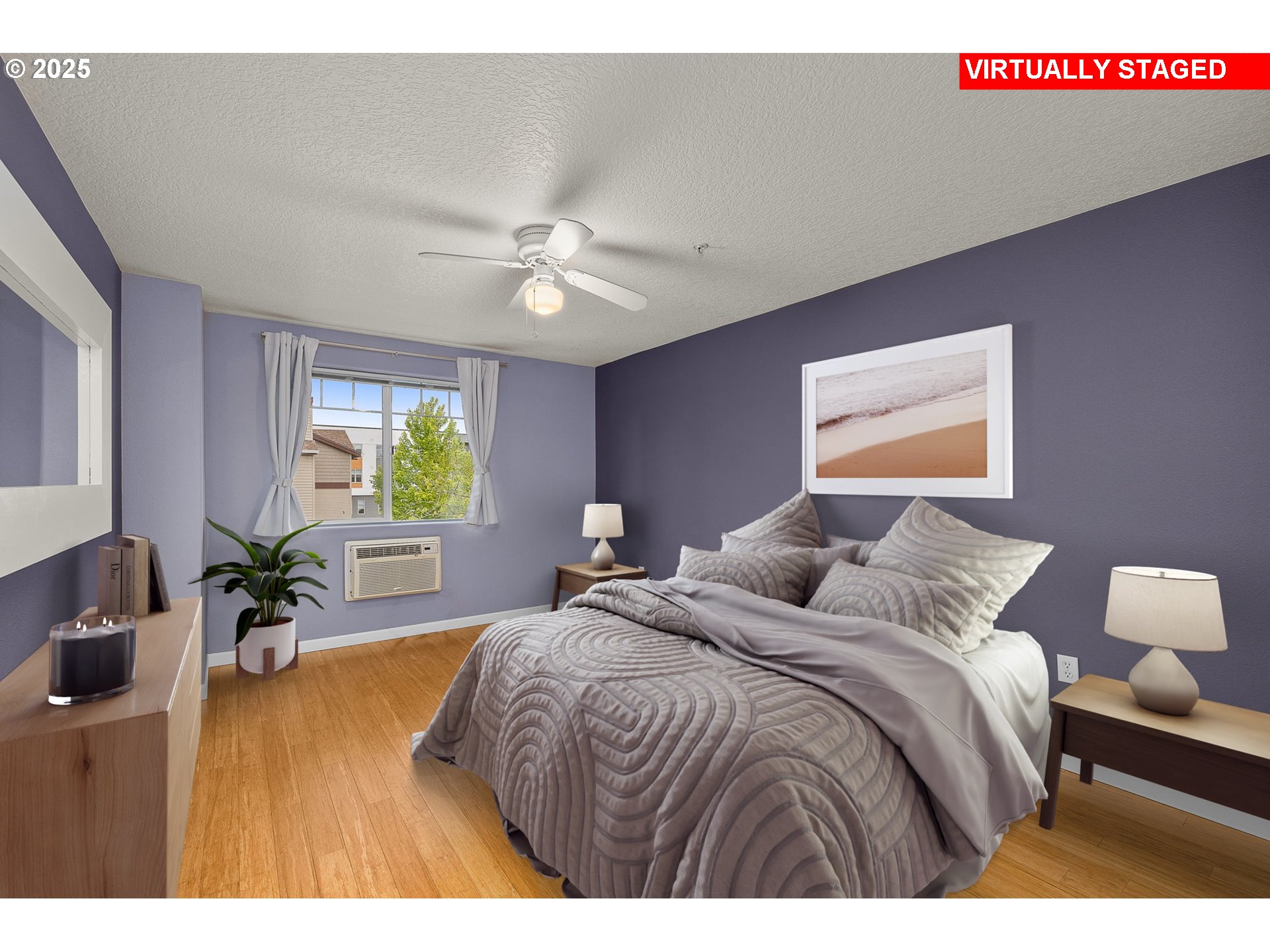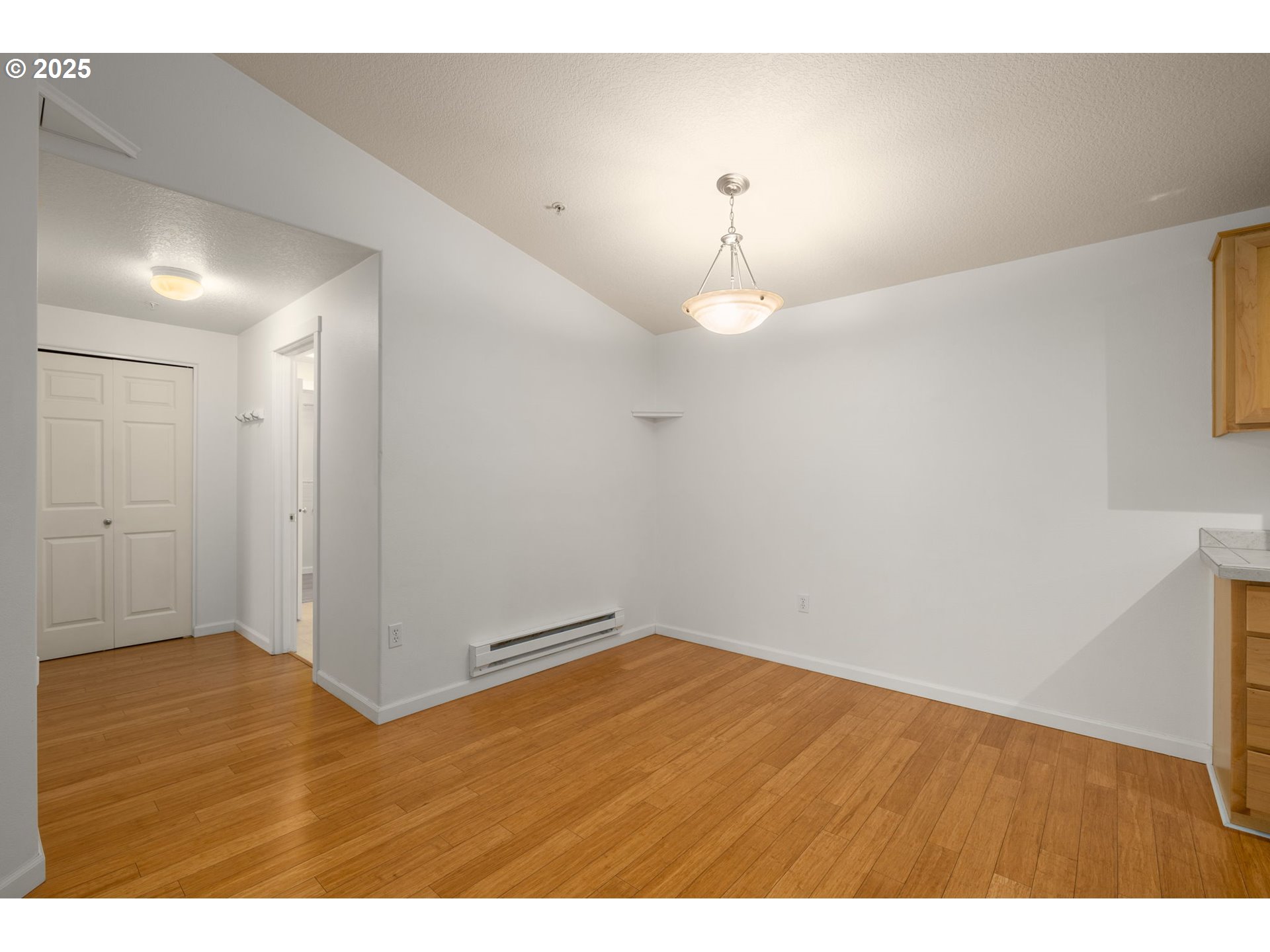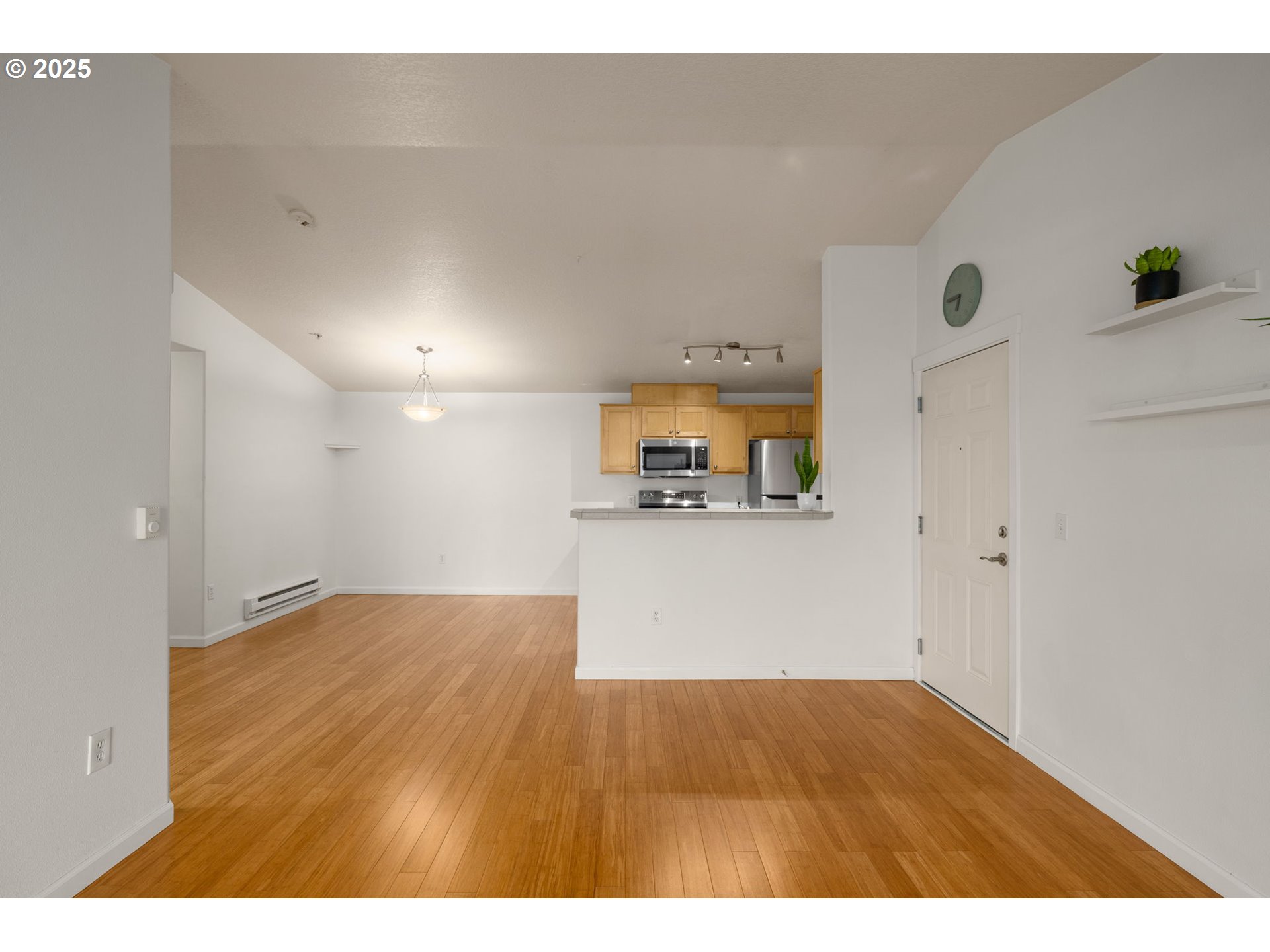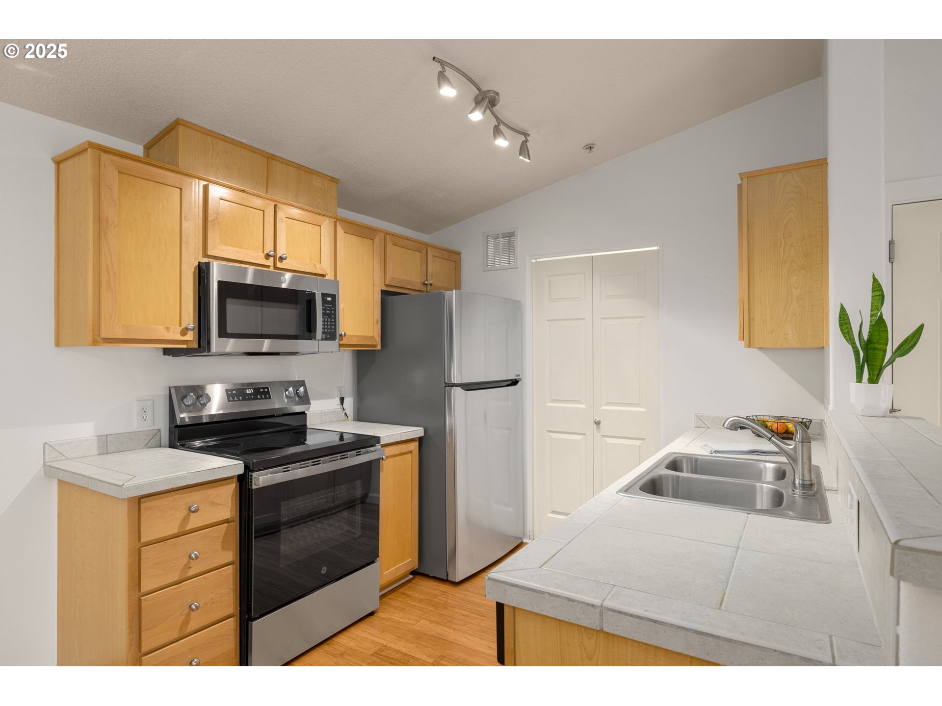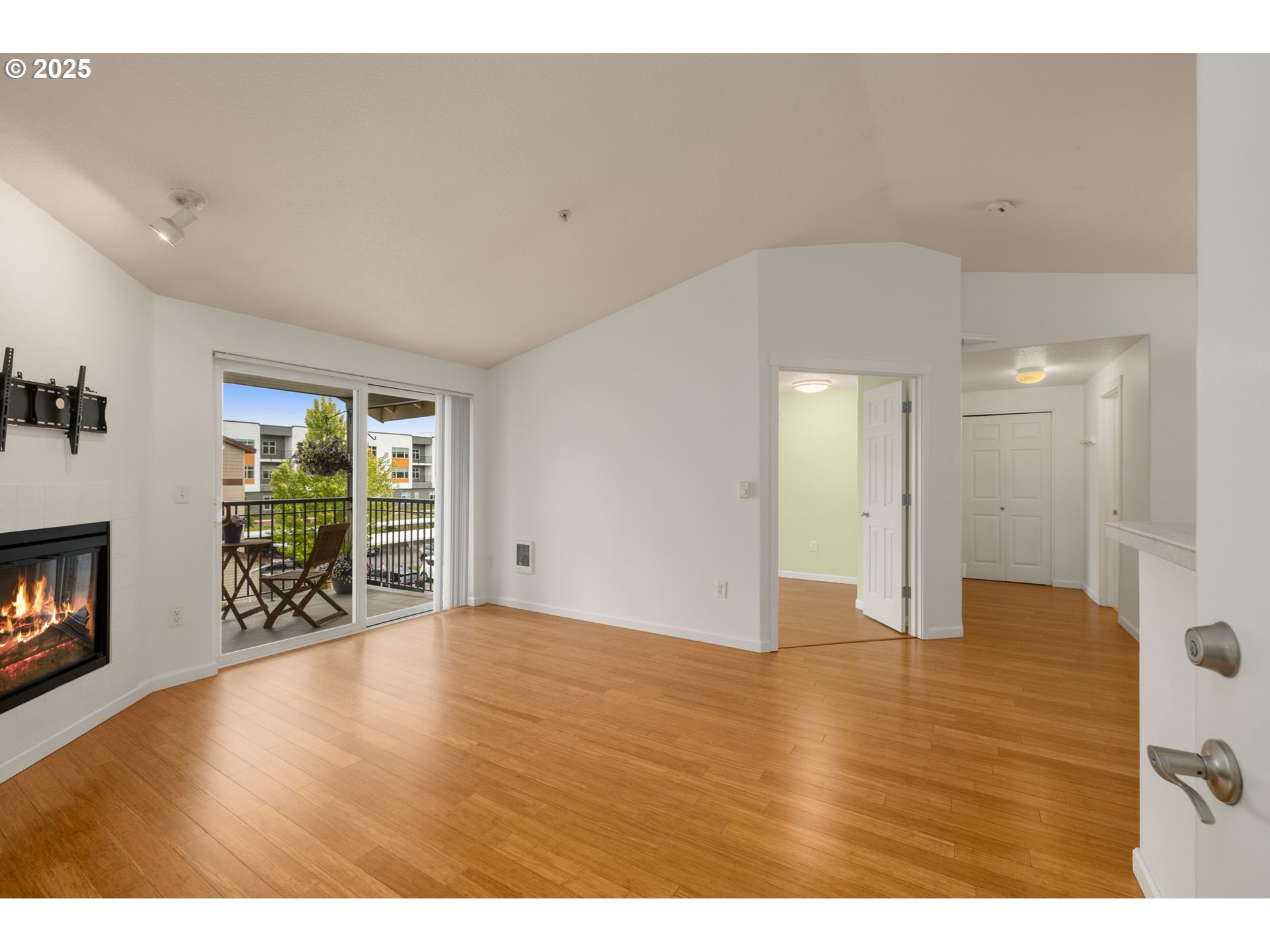 Welcome to this bright and spacious 3rd-floor vaulted condo offering 2 bedrooms and 1 bath in a highly desirable community. Enjoy an open-concept layout filled with natural light, vaulted ceilings in the living, dining, and kitchen areas, and bamboo flooring throughout. The kitchen features brand-new stainless steel range and microwave. Relax by the cozy fireplace or step out onto your private covered deck, which includes additional storage. The primary bedroom boasts a generous walk-in closet, while the second bedroom with charming French doors adds versatility—perfect for guests or a home office. All kitchen appliances, washer, and dryer are included. HOA covers water, sewer, and trash for added convenience, plus a deeded carport. Excellent location with easy access to public transportation, major freeways, Nike, Intel, top hospitals, parks, and The Streets of Tanasbourne shopping and dining. Don’t miss this opportunity!