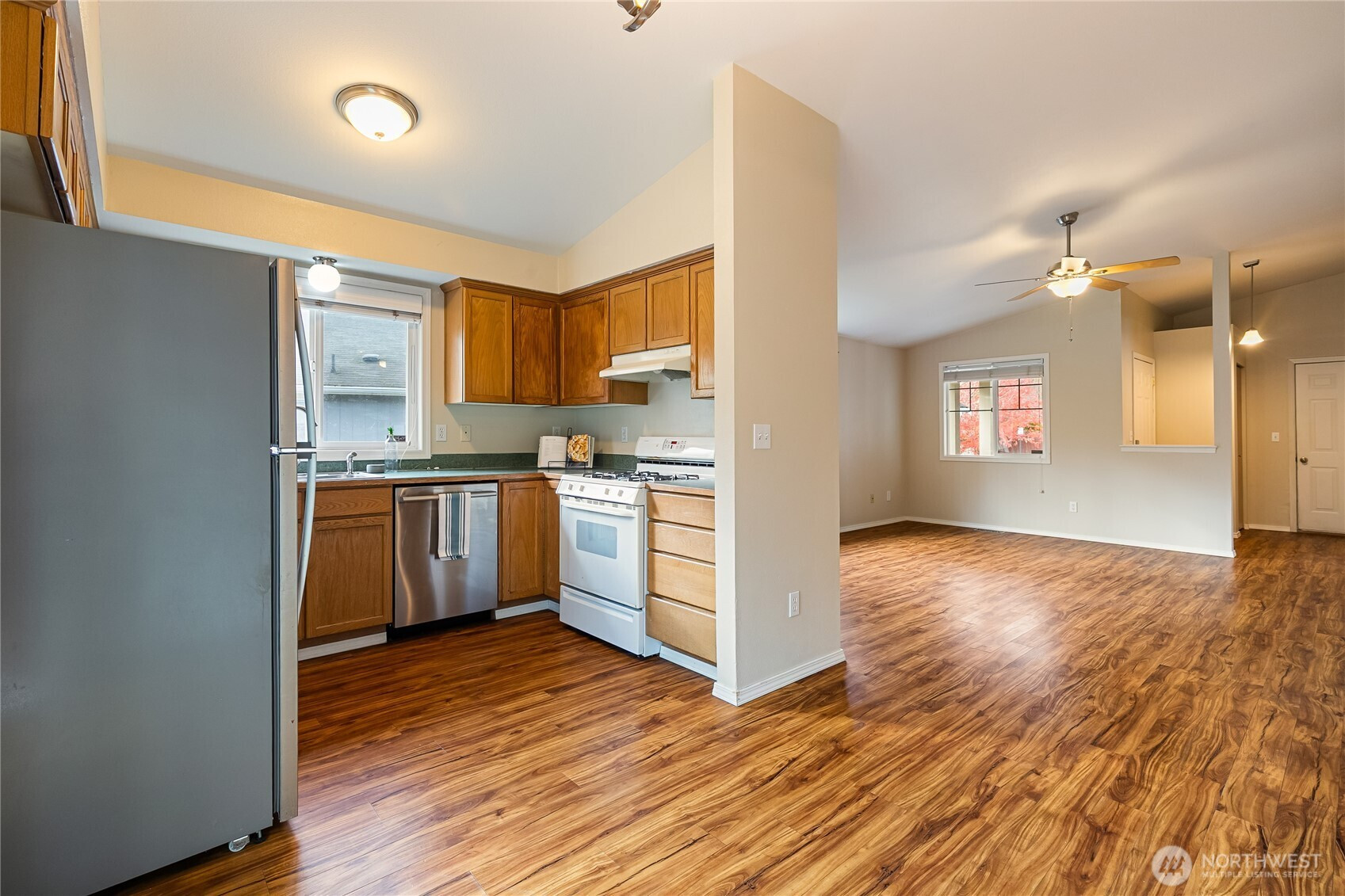 Discover this stunning single-level home, nestled in a serene neighborhood close to everything in Bellingham. With vaulted ceilings and an open floor plan, that makes it feel spacious and inviting. The home backs onto lush green space which you can enjoy from the beautiful deck, offering both privacy and a peaceful atmosphere. Recent updates include a brand-new roof, plush new carpeting, and fresh interior paint, making this home truly move-in ready. Conveniently located mintues from I-5, Bellis Fair Mall, and the vibrant Barkley area, you don't want to miss out on this home!