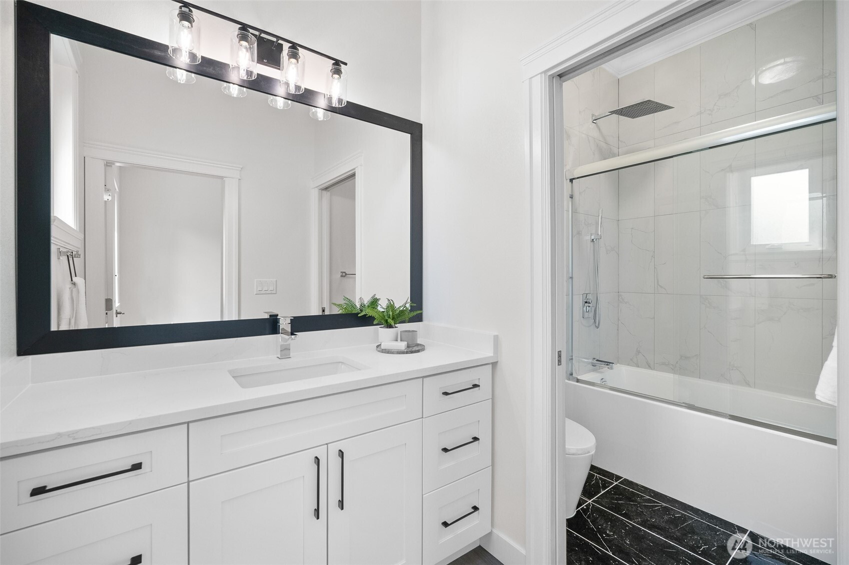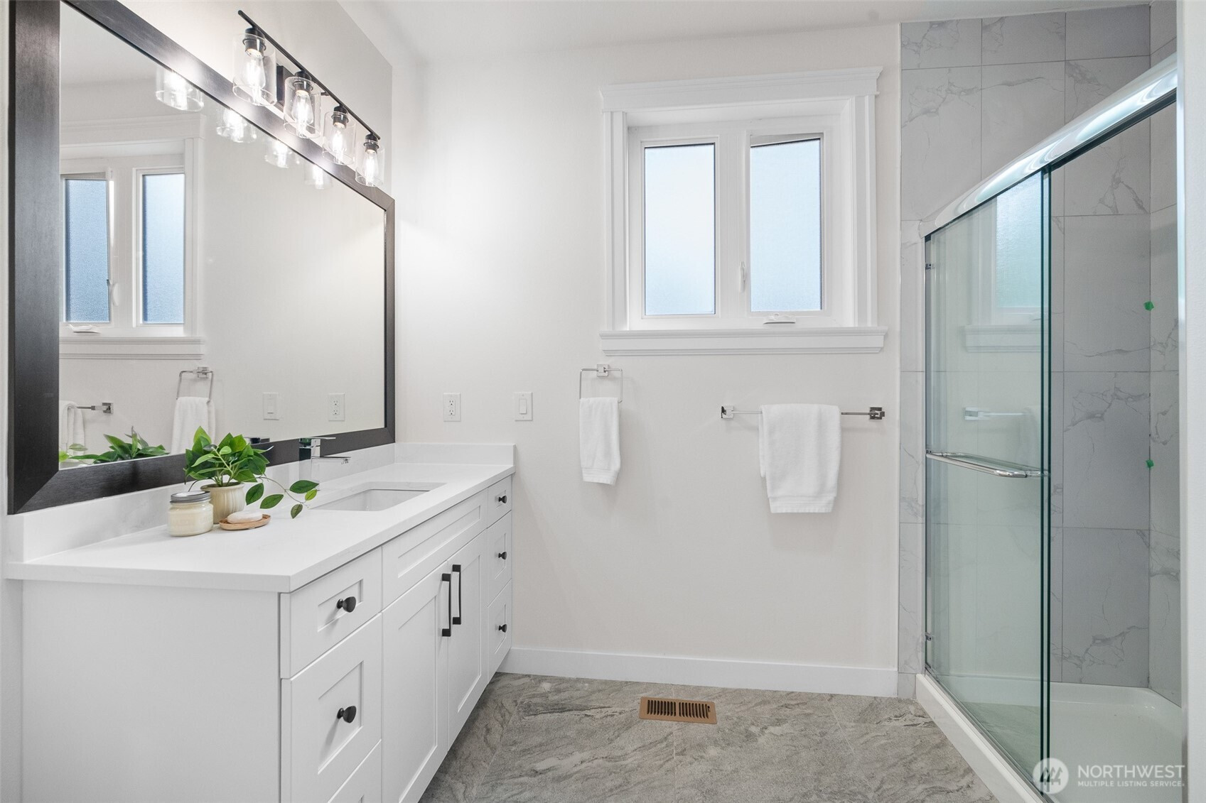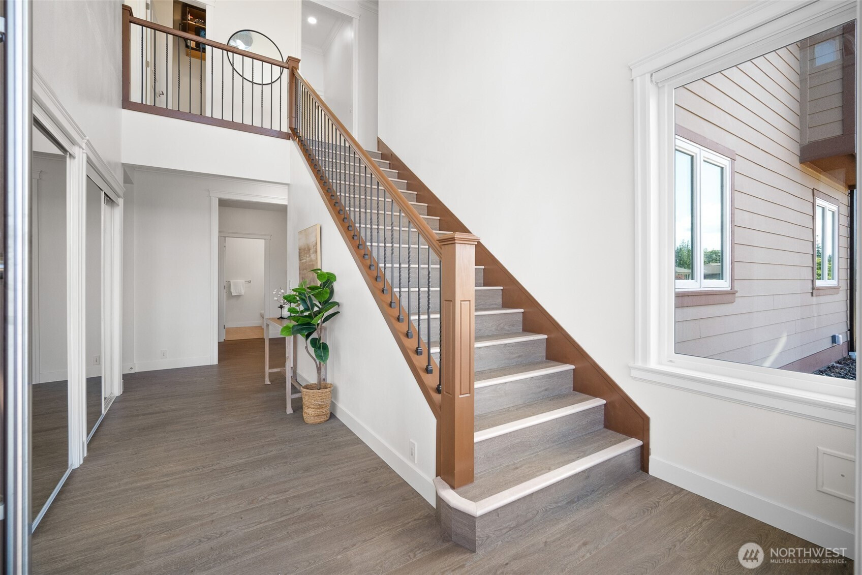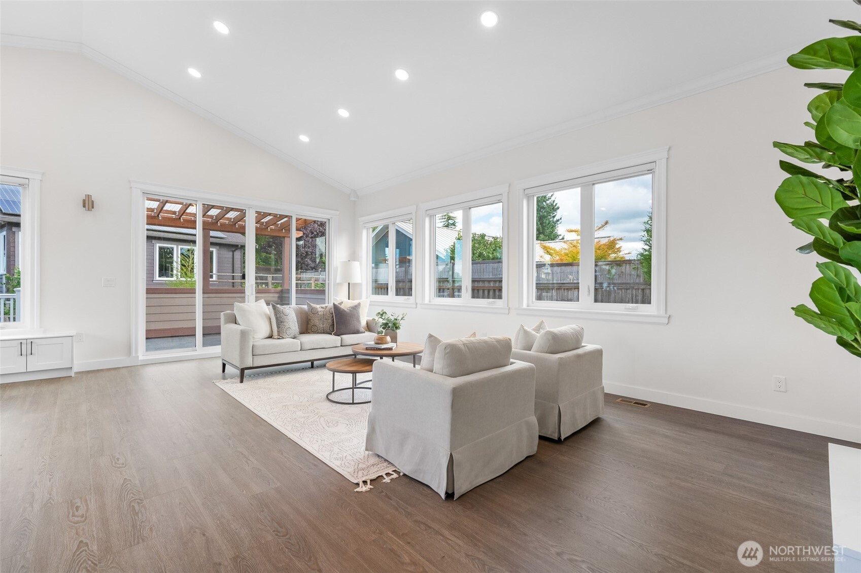 Modern luxury in a prime Bellingham location! Stunning custom-built home, short walk to Lake Whatcom, Whatcom Falls Park, trails, Barkley Village, and downtown. Soaring 15’ ceilings and expansive windows fill the open-concept living and dining areas with natural light, flowing seamlessly to a spacious deck—perfect for relaxing or entertaining. The chef’s kitchen features quartz countertops, stainless steel appliances, a walk-in pantry, and a large island with seating and storage. The main-level primary suite is a serene retreat with a spa-inspired bath and oversized shower. A second en-suite bedroom offers great flexibility. Downstairs includes a home office, media room, and game room. High-efficiency heat, A/C, and spacious 3-car garage.