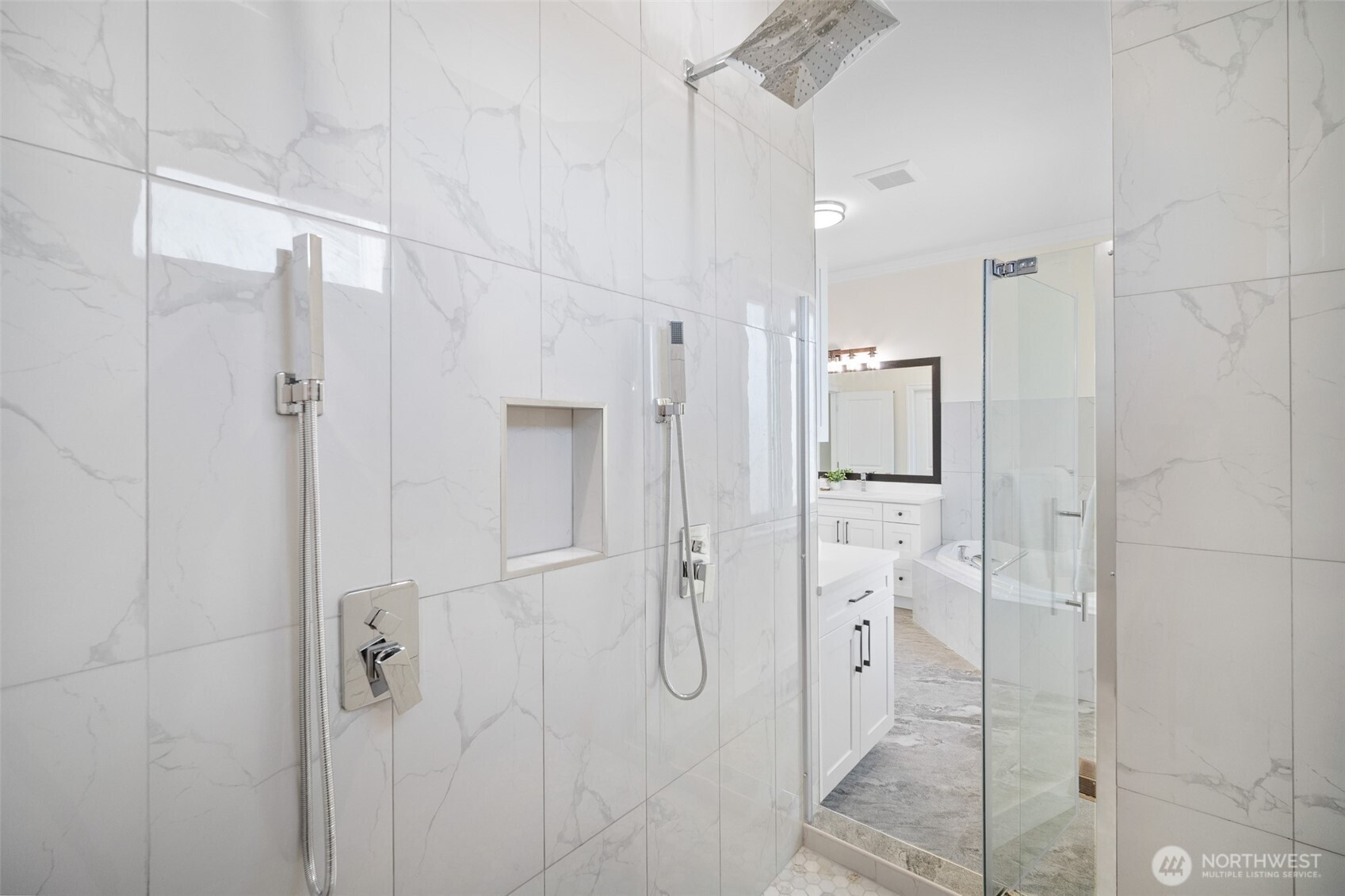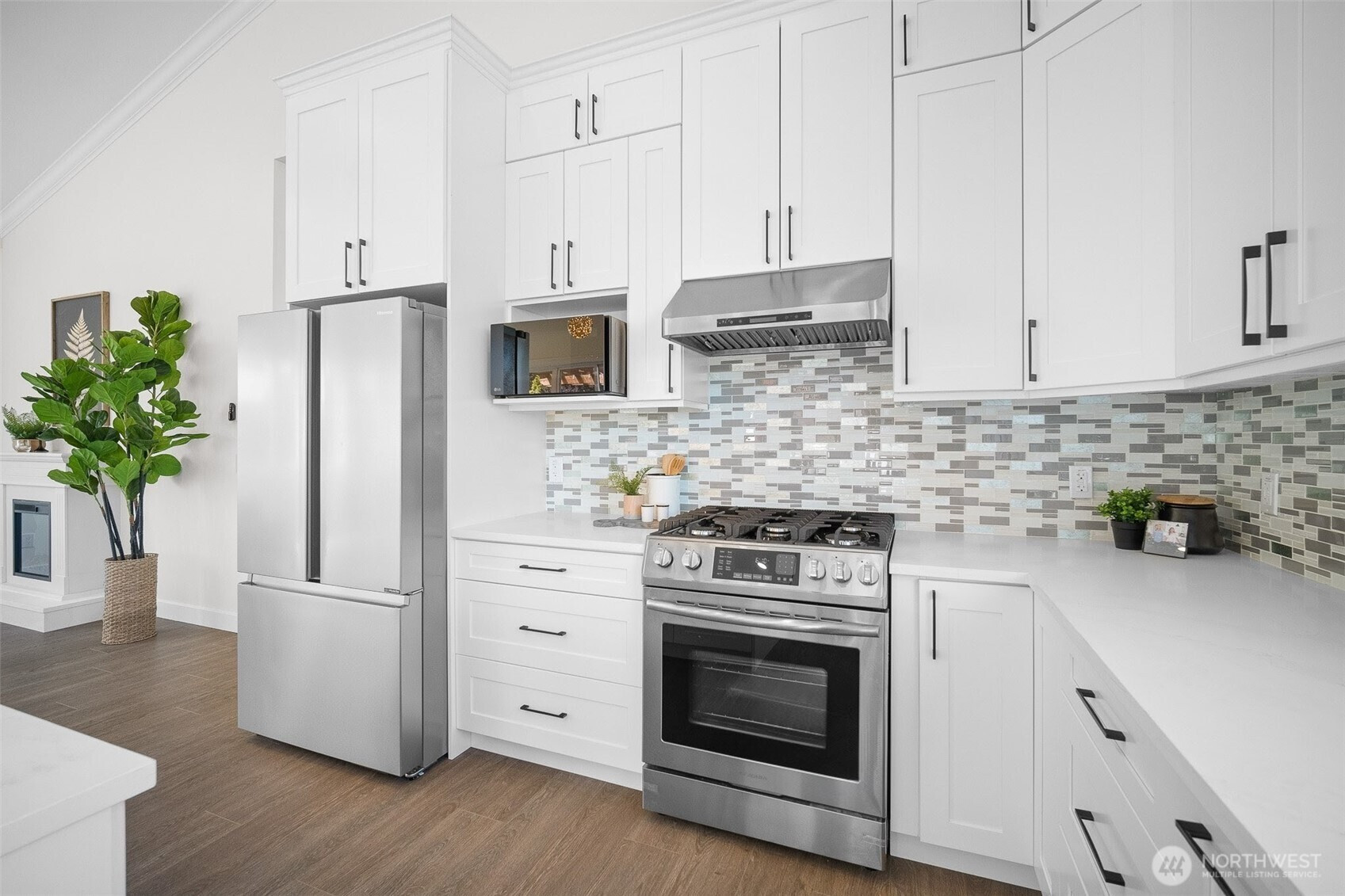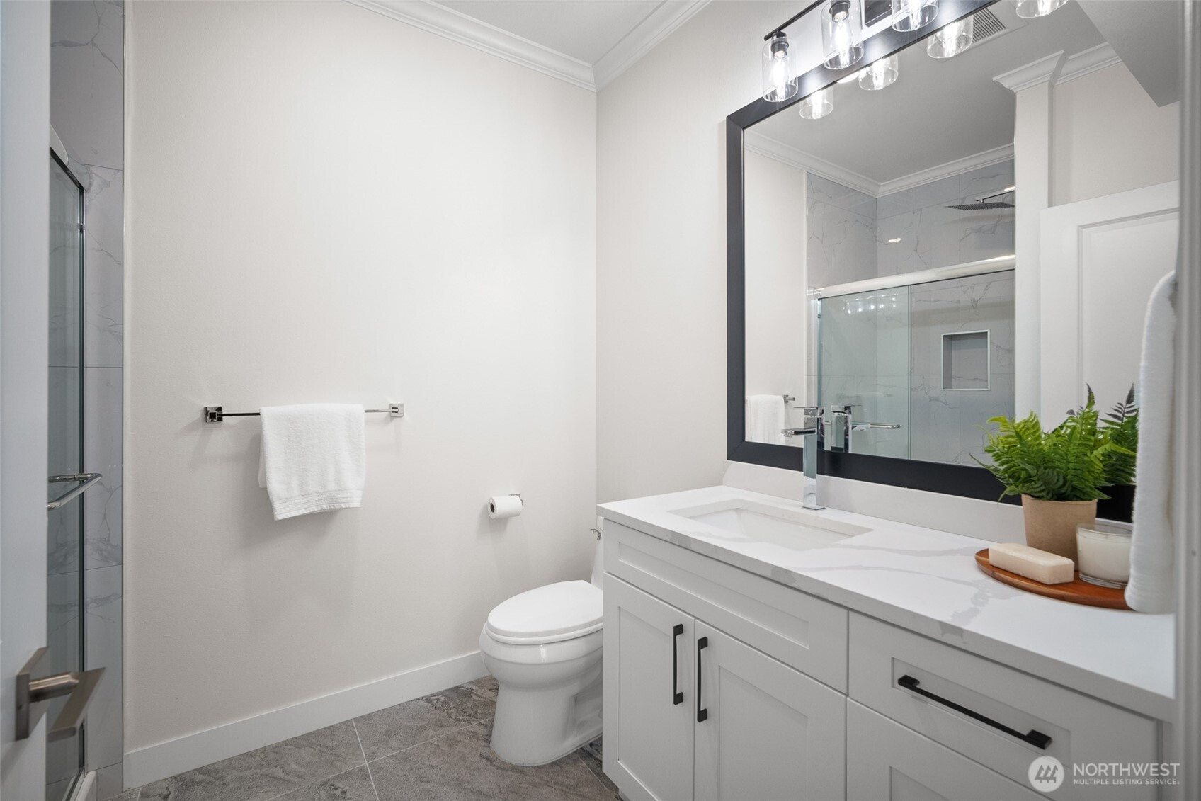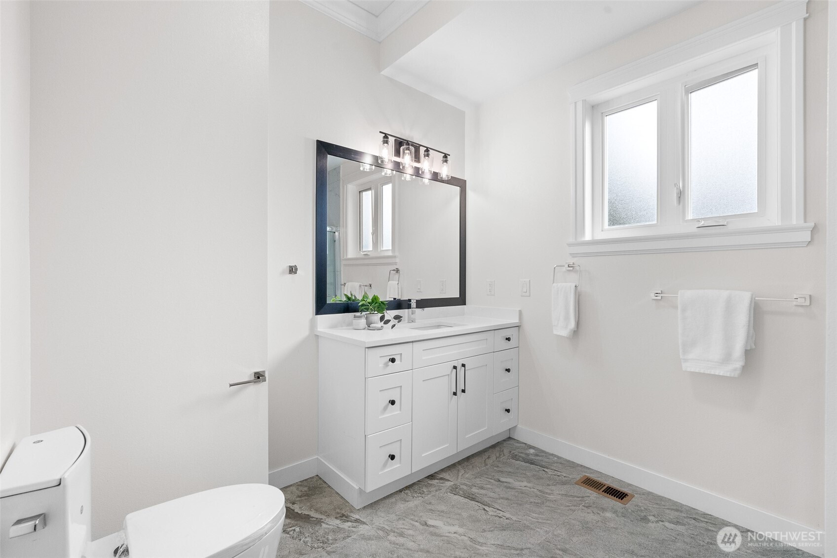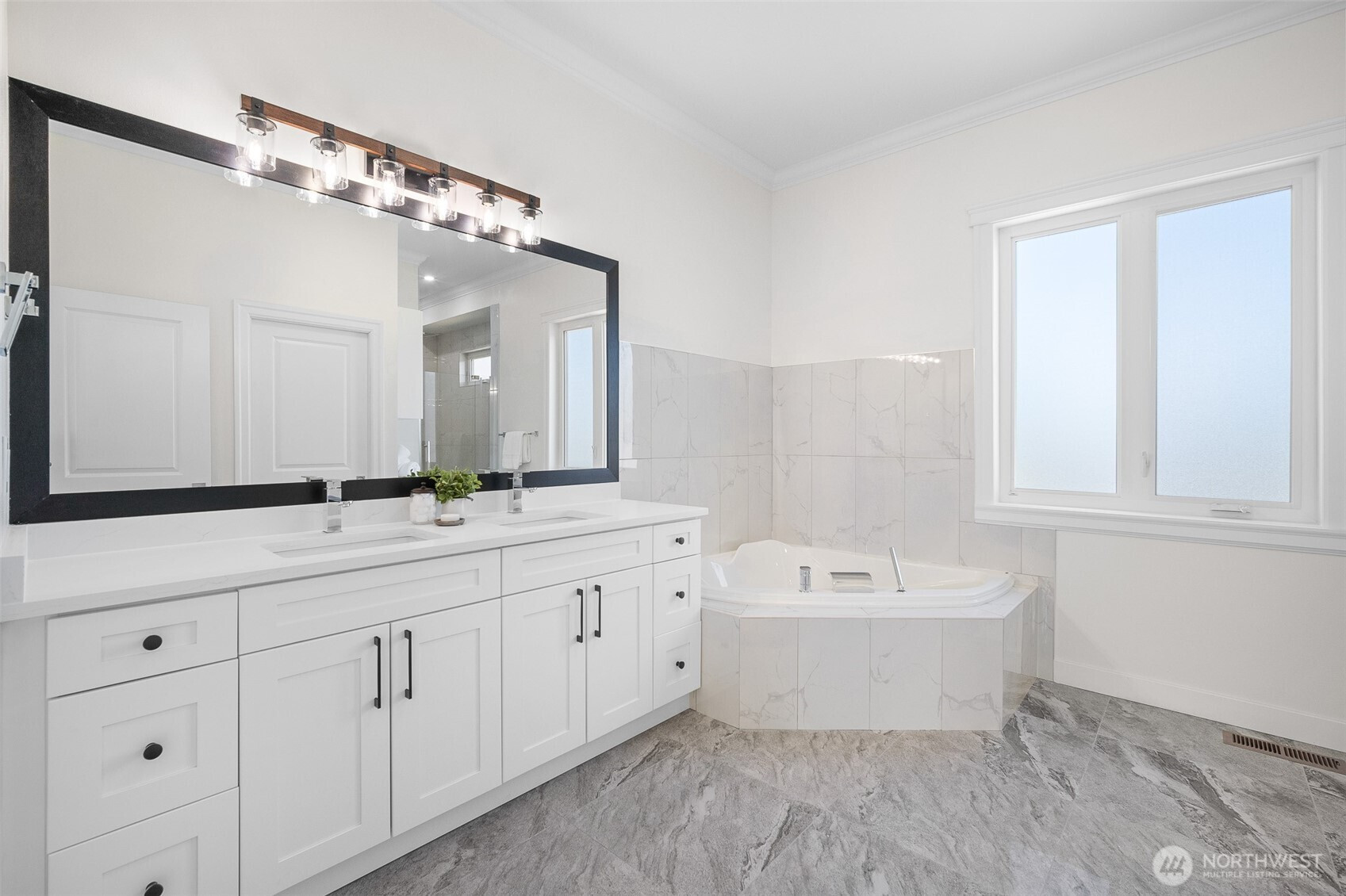 Modern luxury in a prime Bellingham location! Stunning custom-built home, short walk to Lake Whatcom, Whatcom Falls Park, trails, Barkley Village, and downtown. Soaring 15’ ceilings and expansive windows fill the open-concept living and dining areas with natural light, flowing seamlessly to a spacious deck—perfect for relaxing or entertaining. The chef’s kitchen features quartz countertops, stainless steel appliances, a walk-in pantry, and a large island with seating and storage. The main-level primary suite is a serene retreat with a spa-inspired bath and oversized shower. A second en-suite bedroom offers great flexibility. Downstairs includes a home office, media room, and game room. High-efficiency heat, A/C, and spacious 3-car garage.