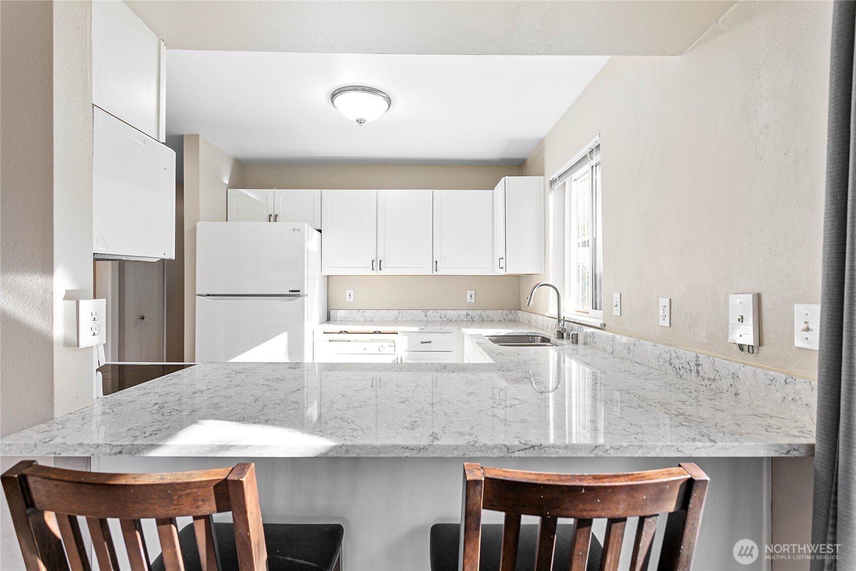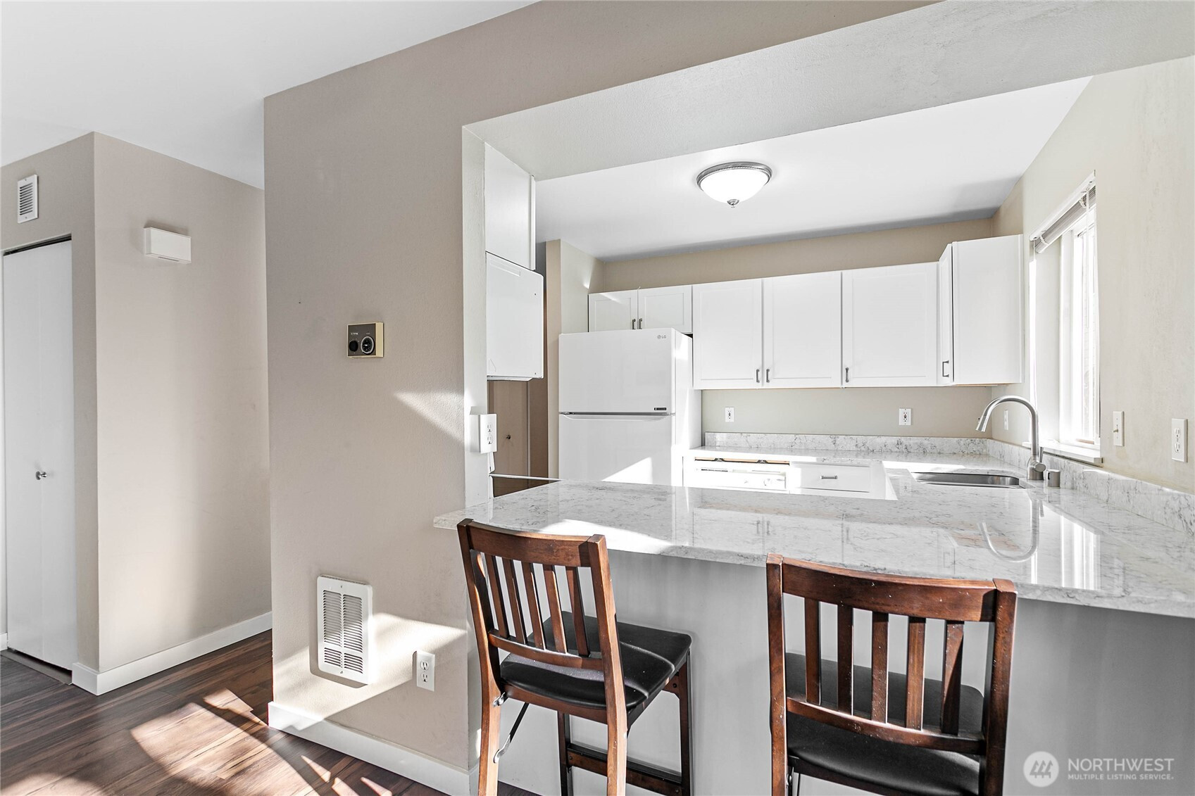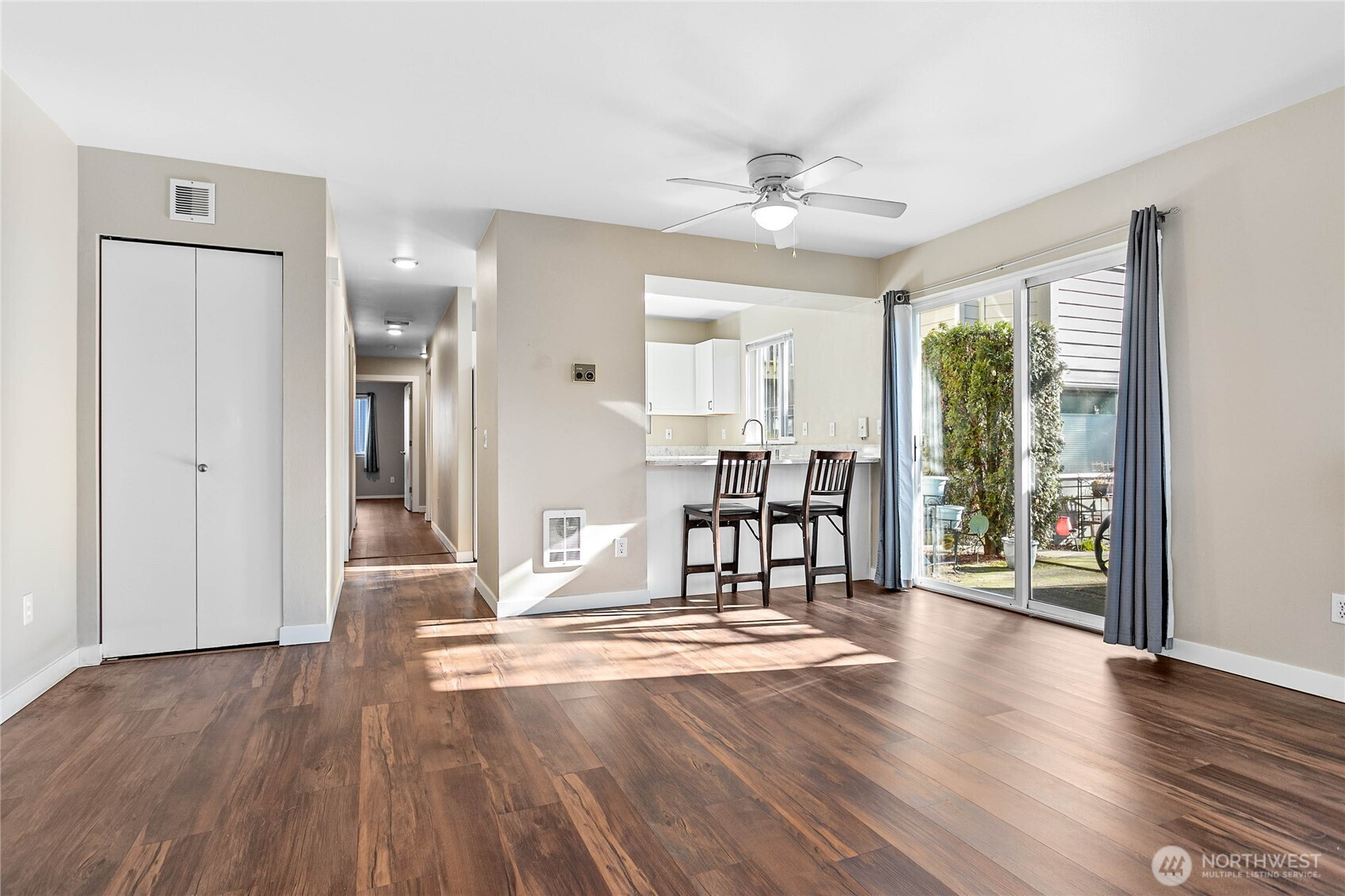 Totally updated ground floor unit in the heart of Birchwood! Spacious three bedroom unit offers generous sized bedrooms, a spacious full bathroom and half bath. Full sized laundry/utility room with side by side washer and dryer. Spacious living room features newer gas fireplace, bay windows and a private patio. Updates include new cabinets, countertops flooring throughout whole unit (including bathrooms), appliances, and more. Walkable to all of Birchwood's amenities, just steps away from Shuksan Middle School and minutes away from I-5.