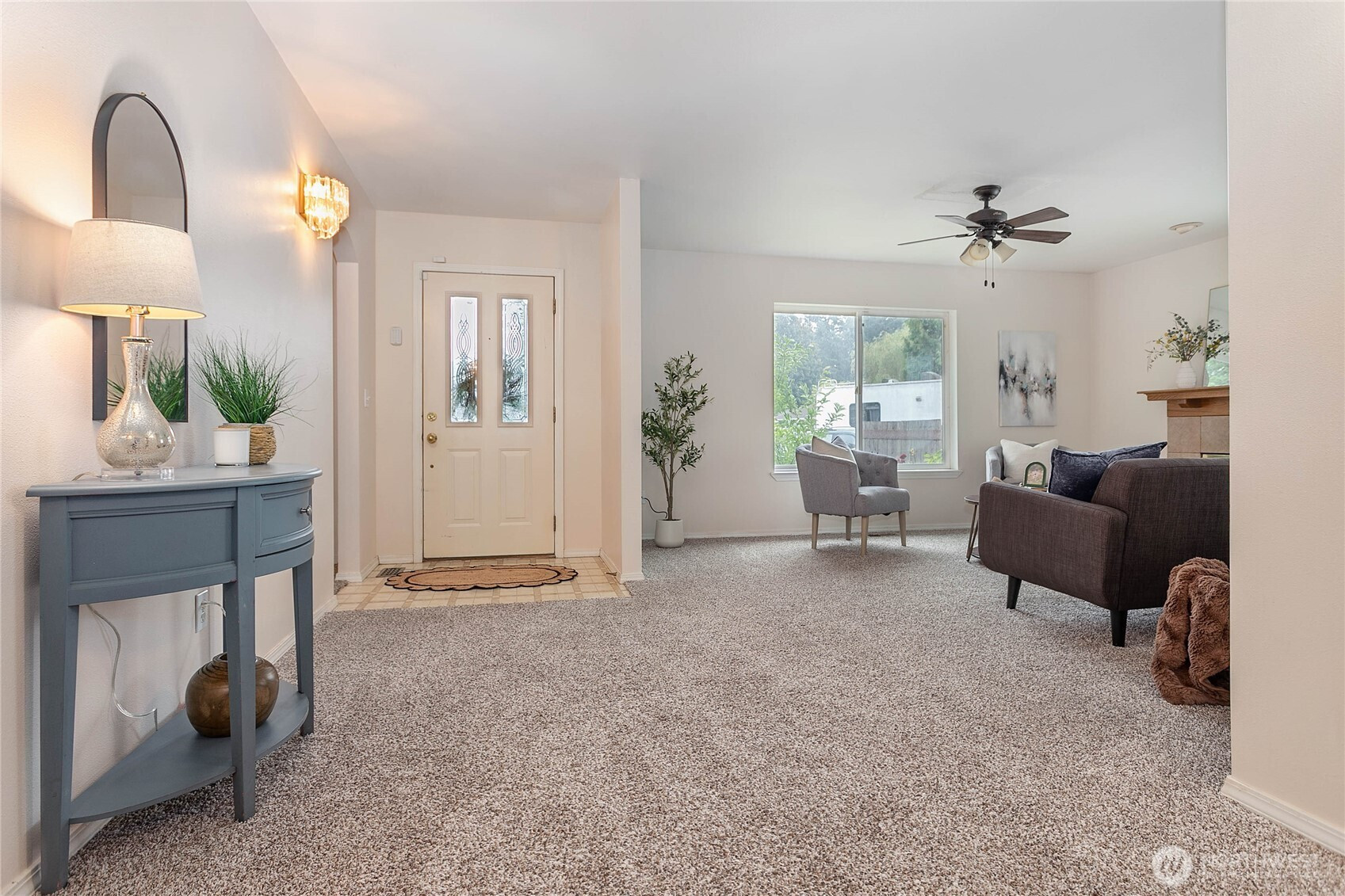 Great starter, investment or vaca one story rambler w/2 car attached garage & great layout minutes from beautiful Birch Bay and/or Semiahmoo. Nice open entry, spacious living room w/cozy gas fireplace, brand new carpet throughout & fresh paint welcome you. Great size kitchen w/newer fridge & large walk-in pantry open to dining room w/updated lighting. Owner's suite w/ensuite 3/4 bath is located on opposite side of home from 2 more bedrooms. Guest bath w/step-in jacuzzi tub offers daily relaxation. Large deck off dining offers perfect spot to sit & enjoy your partially treed backyard views. Located on extra-large lot in quiet cul-de-sac w/2 sheds in Richmond park just minutes from the beach.
