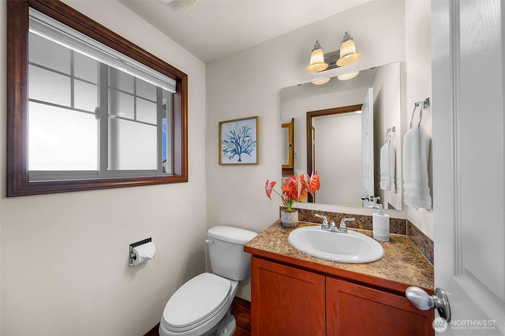 (503) 893-8874Beaches, Boats & Birch Bay Sunsets nearby! Bay Crest South home has Cherry finish trim & cabinets thru-out. The dining area slider opens to the side yard & leads to a patio/firepit & playhouse. Granite tile counters are in the kitchen, a new microwave with all appliances incl. The living room is off the kitchen/dining & has a large window overlooking your backyard, no neighbors at the chain link fence, just nature. Upstairs, you'll find an office/media area with a built-in desk, laundry room plus a full bathroom. Walk-in closets are in all 3 bedrooms. The primary bedroom overlooks the backyard w/a walk-in closet that is HUGE. Double sinks in the primary ensuite. Backs to a greenbelt w/a side gate. 1/2 bath on main. Bring this home to life.