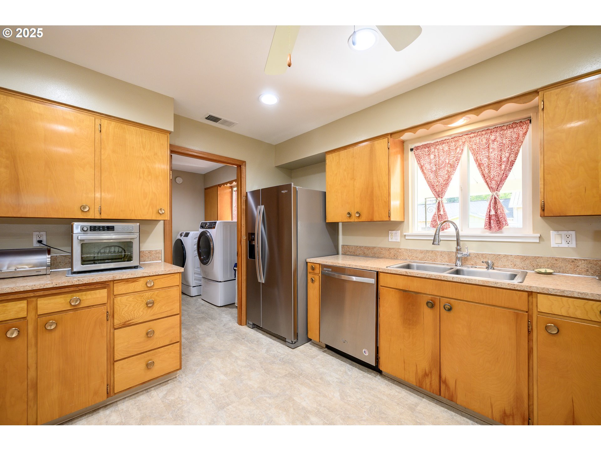 Enjoy easy living in this single-level SW McMinnville home, perfectly located close to town conveniences. With 2 bedrooms and remodeled 1.5 baths, the home features refinished wood floors, new windows, new laminate counters, and a new garage door. Smart systems—including thermostat and sprinkler controls—add efficiency, while outdoor living shines with a covered patio, raised garden beds, boysenberries, blueberries, grapes, and kiwi on nearly a quarter acre. A handy tool shed adds storage, and you’ll love the unique benefit of having your own push-button control for the streetlight and crosswalk—making daily life that much simpler.