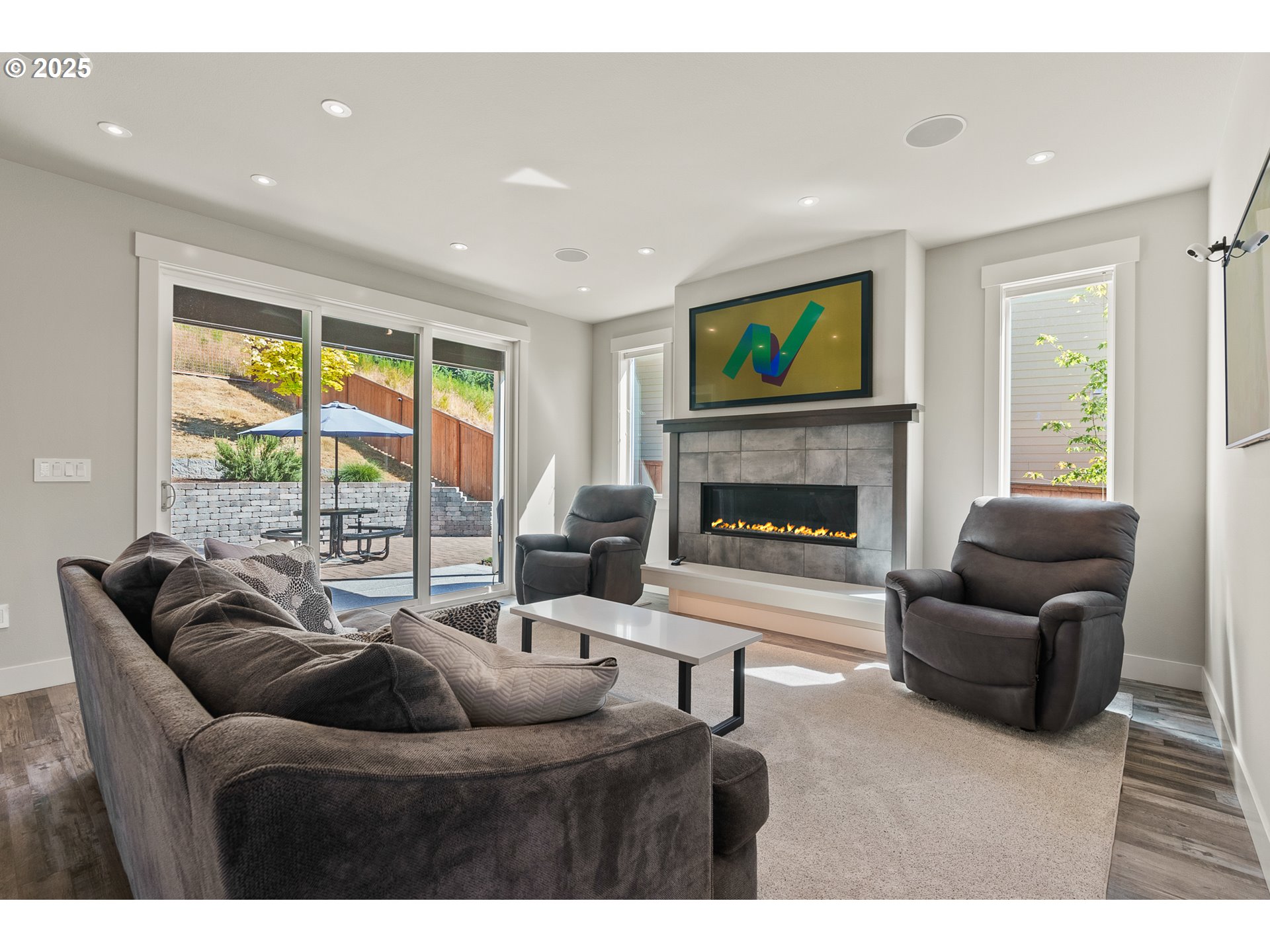 (503) 893-8874From the moment you enter, you’ll be captivated by the refined attention to detail and custom features that distinguish this home. A professionally designed lighting plan creates a warm, inviting ambiance, while the chef’s kitchen showcases paneled high-end Thermadore appliances, sleek quartz countertops, and LED accent lighting beneath the cabinets, hearth, and kickboards for an elegant touch.Designed with modern living in mind, the home includes three EV outlets, built-in speakers in the kitchen, dining, and living areas, plus a smart door lock and thermostat for enhanced security and energy efficiency. Bathrooms feature custom tile showers, premium fixtures, heated mirrors, motion-sensor entry lights, and high-capacity humidity-sensing fans. Comfort is assured year-round with a dual-fuel, high-efficiency heat pump providing both heating and cooling.Striking engineered corner windows frame stunning views, while the contemporary Montigo gas fireplace offers a cozy focal point. The luxurious primary suite is highlighted by a Rossendale soaking tub and an Elpha closet system for both organization and style.Outdoors, the expansive terraced backyard ensures both privacy and a natural backdrop. French draining system on 3 sides of the home. The exterior blends Breckenridge clear cedar with HardiPlank siding, complemented by a premium protective coating on the driveway, garage, and patio. Thoughtful landscaping includes mature trees, a paver patio with LED lighting, and a built-in natural gas fire pit—perfect for entertaining. Additional conveniences include a Rachio smart irrigation system, professional grade camera and WiFi systems, a stained cedar fence with hogwire for unobstructed views, and a concrete/brick-finished retaining wall for both beauty and function.Every element of this home has been intentionally designed to balance luxury, comfort, and practicality. Don’t miss the opportunity to make it yours. OPENHOUSE Oct 11, SAT, 12-2 PM.